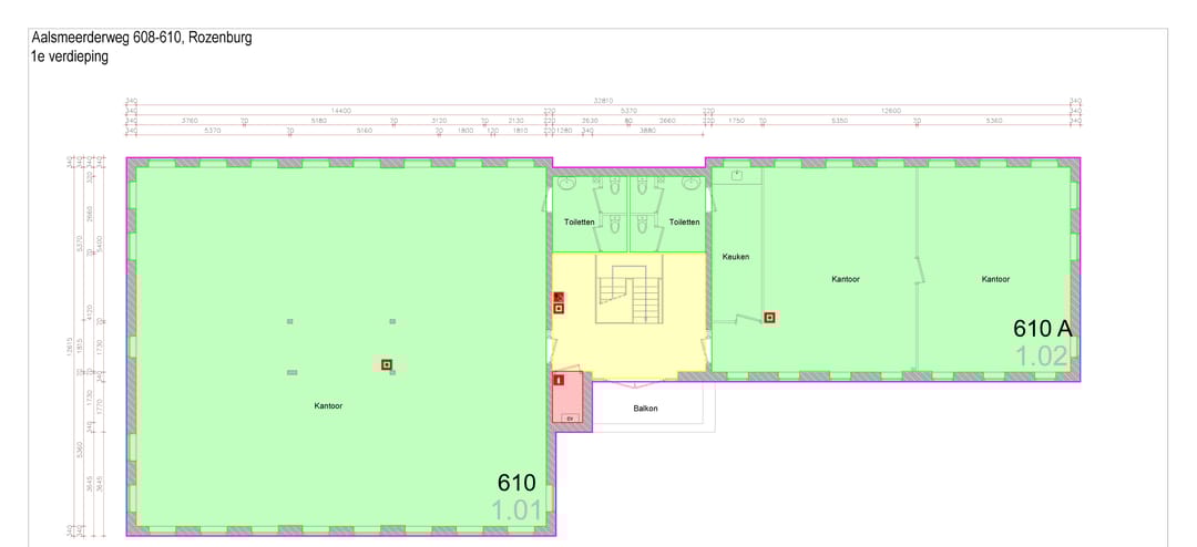 • Aalsmeerderweg 606: ca. 223 m² kantoorruimte op de eerste verdieping