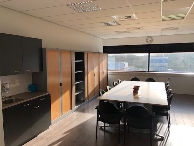 Voorzieningen: Systeemplafond, toilet, pantry, verwarming