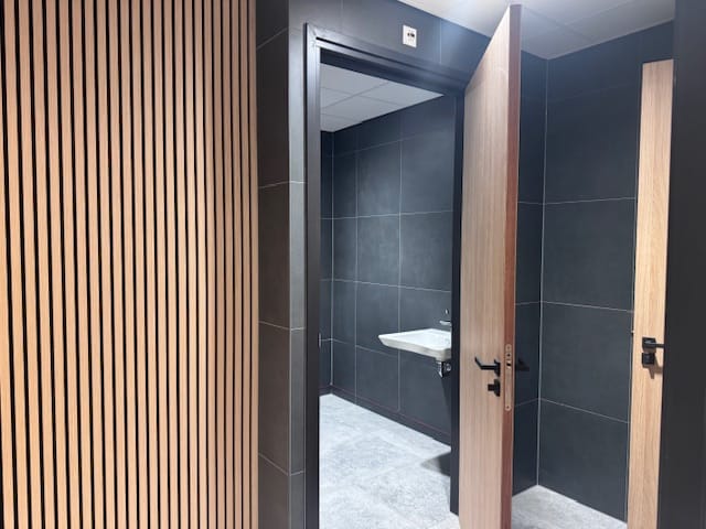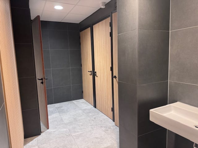 # plafonds zijn afgewerkt met systeemplafonds met verlichtingsarmaturen
