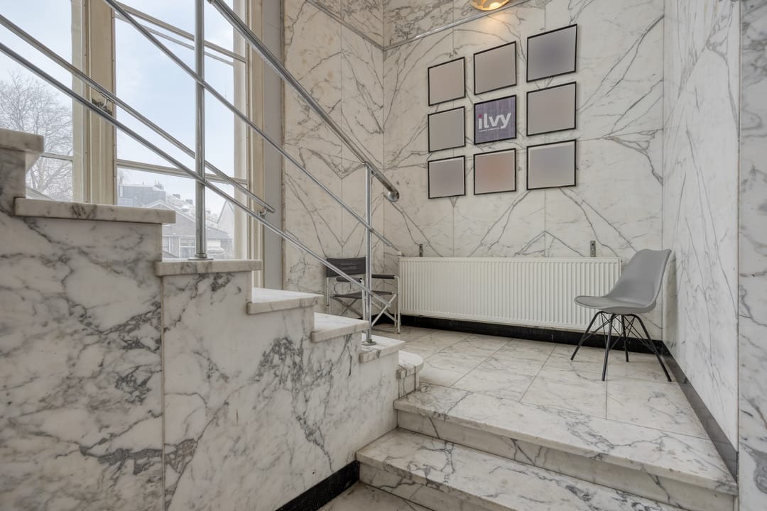 In dit monumentale pand, dat oorspronkelijk diende als bankgebouw en is ontworpen door architect Dudok, bevindt zich deze unieke kantoorruimte. Het gebouw is strategisch gelegen aan de rand van het centrum van Schiedam aan de Gerrit Verboonstraat.
