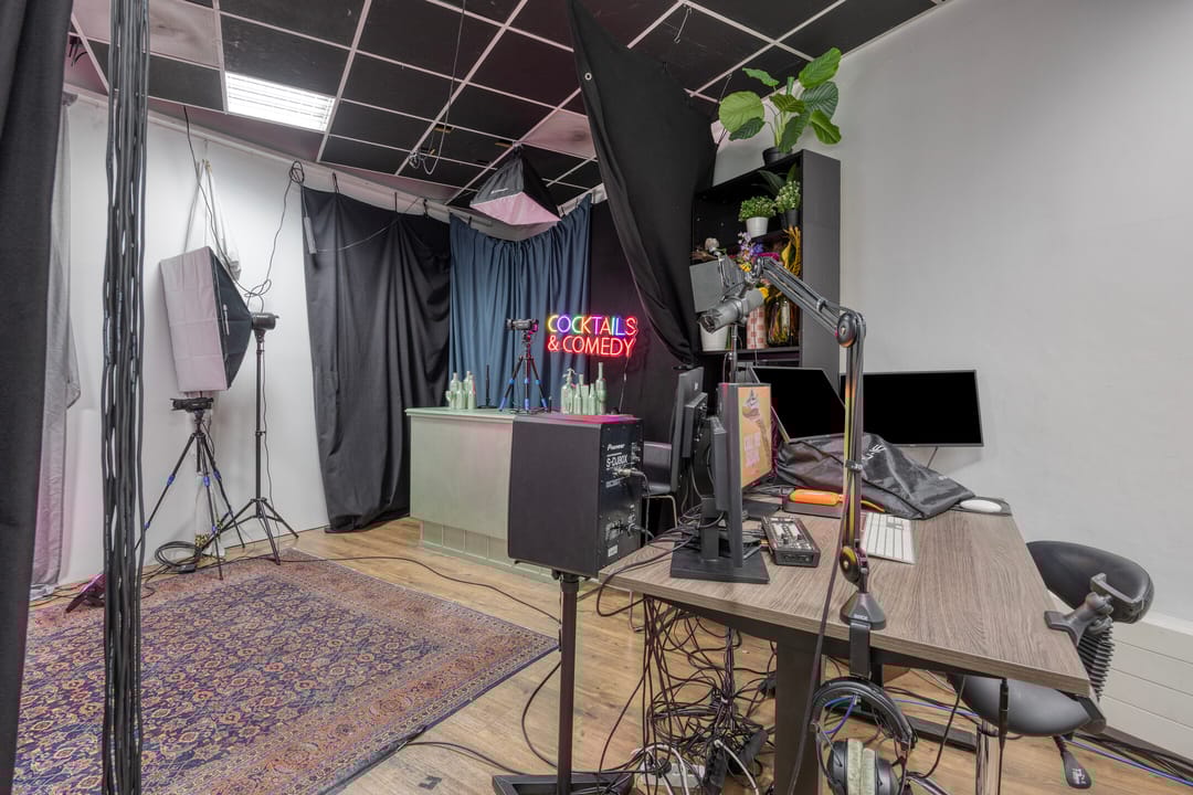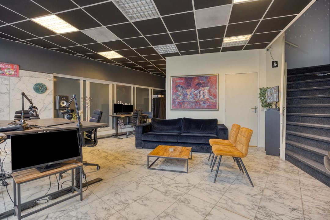 • Op de verdiepingsvloer heeft de huidige huurder voorts een kamer gerealiseerd die geluidsdicht is uitgevoerd. Deze is in overleg ter overname.