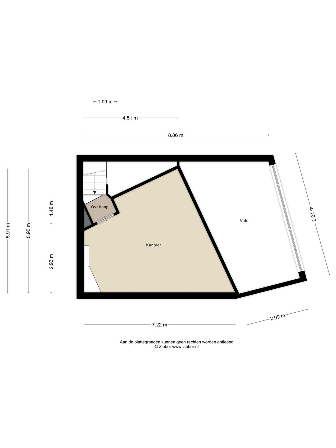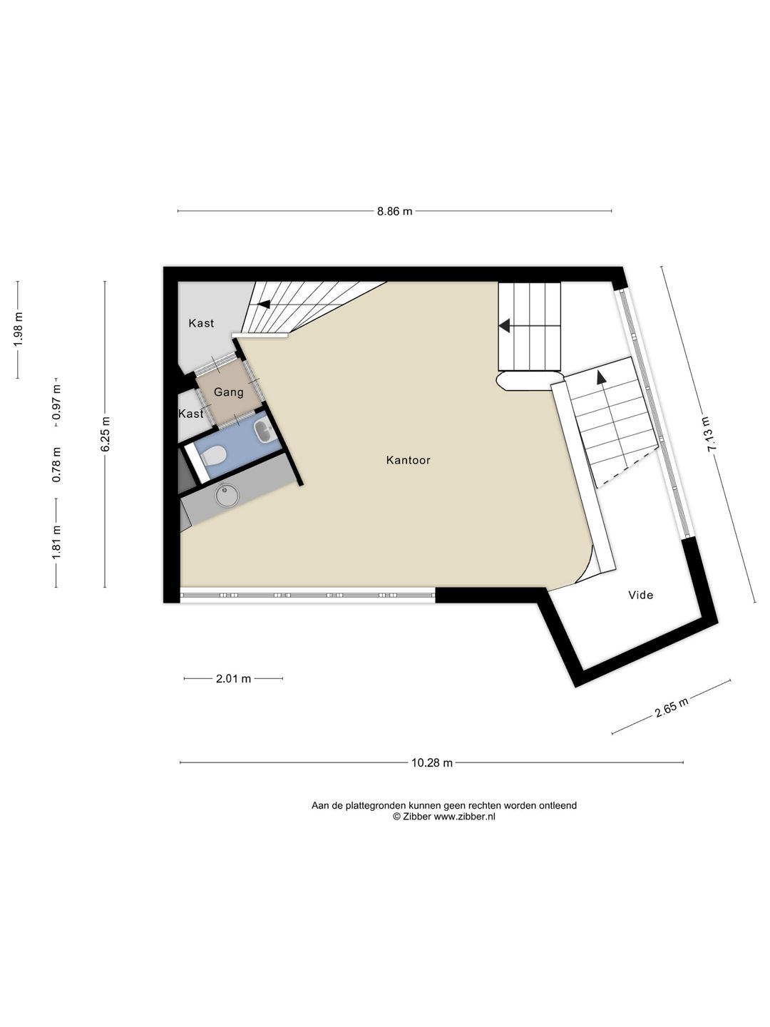 De oppervlakten zijn zo zorgvuldig mogelijk vastgesteld, doch mogen niet worden aangemerkt als zuivere verhuurbare oppervlakte volgens de Nederlandse Eenheids Norm NEN 2580.