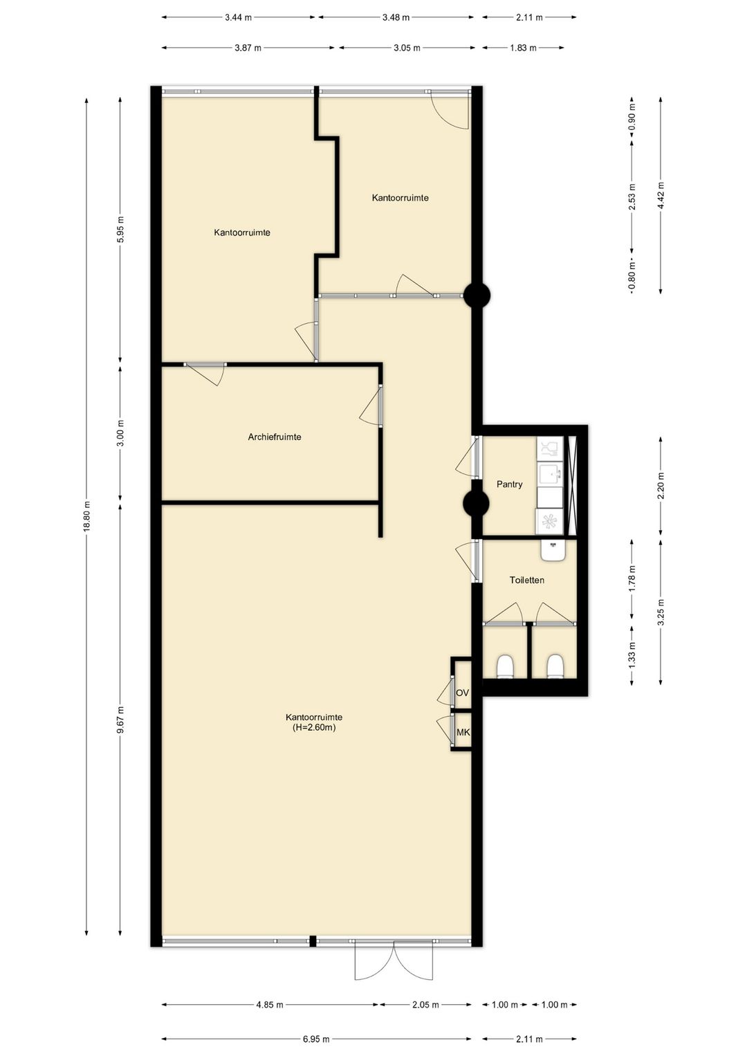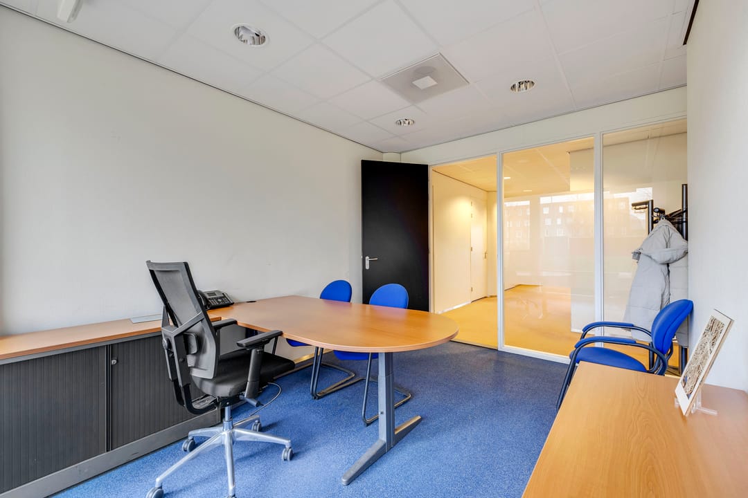 De kantoorruimte is praktisch ingedeeld en geschikt voor diverse kantoorconcepten: