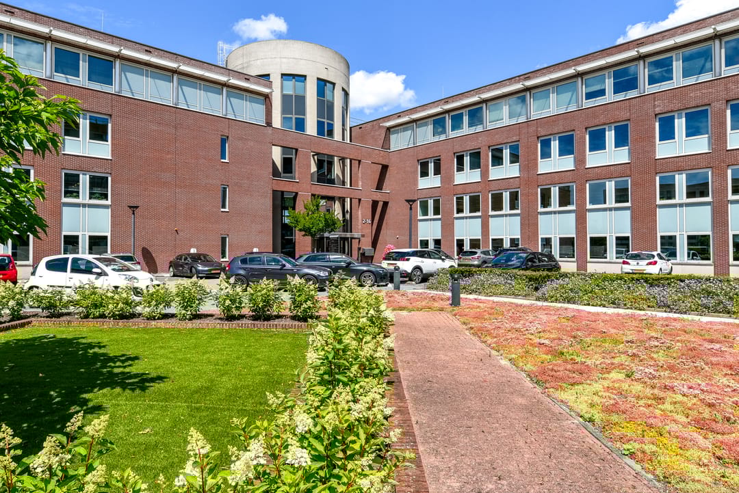 Ca. 600 m² kantoorruimte vanaf ca. 130 m² in een markant gebouw bestaande uit twee bouwdelen die door middel van een rond middendeel met elkaar zijn verbonden.