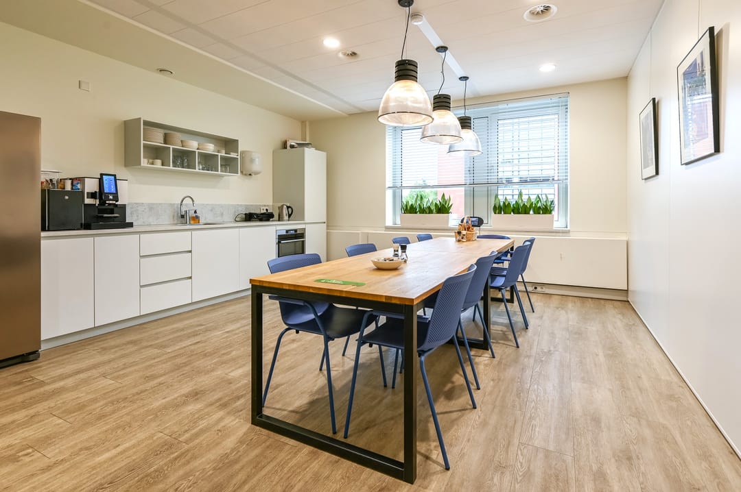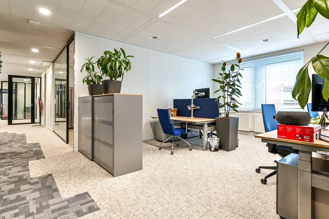 De ruimte van ca. 470 m² (2A) is voorzien van eigen sanitaire voorzieningen en een complete en luxe inrichting met (glazen) scheidingswanden, vloerbedekking, een keuken, databekabeling, airco-units en binnen zonwering.