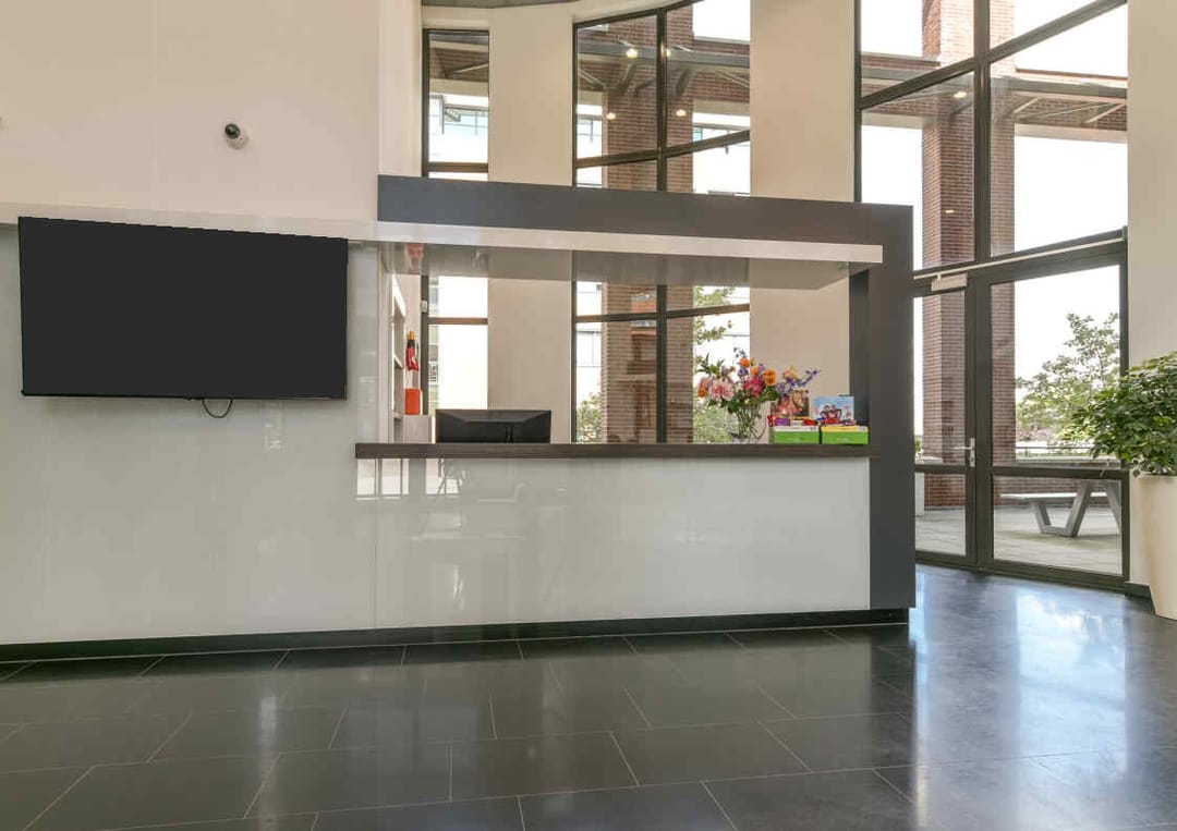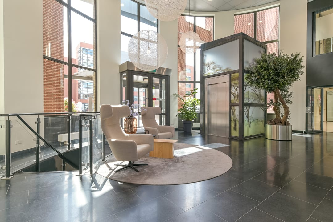 - representatieve entree met vide met bemande receptiebalie;