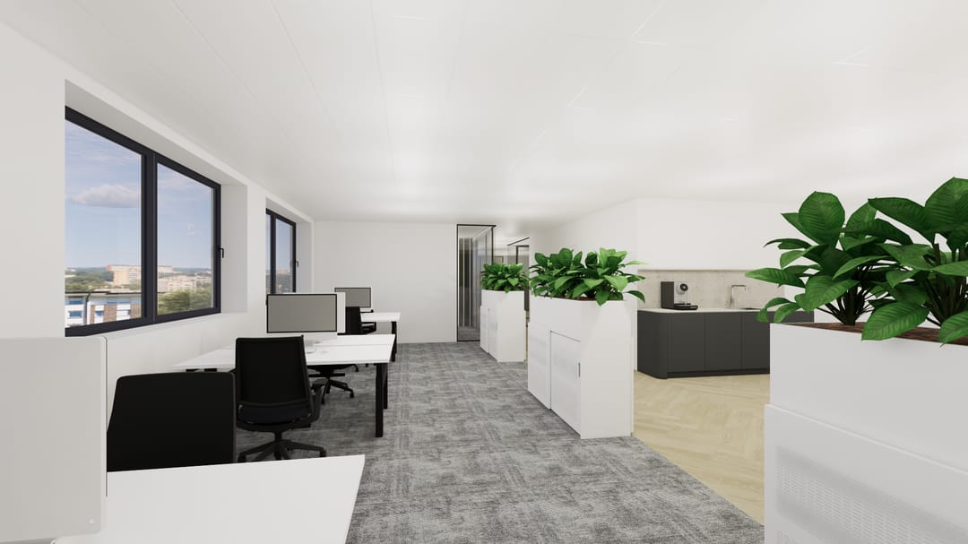Voor de verhuur is circa 1.600 m² kantoorruimte beschikbaar, verdeeld over de 1e en 2e verdieping, met de mogelijkheid tot deelverhuur. De ruimtes worden casco+ opgeleverd en kunnen in overleg met verhuurder naar wens worden ingedeeld en afgewerkt, waardoor een huisvesting ontstaat die volledig aansluit bij de identiteit en behoeften van de gebruiker.