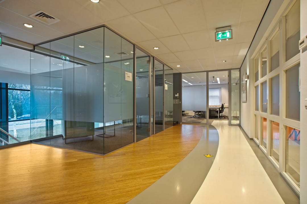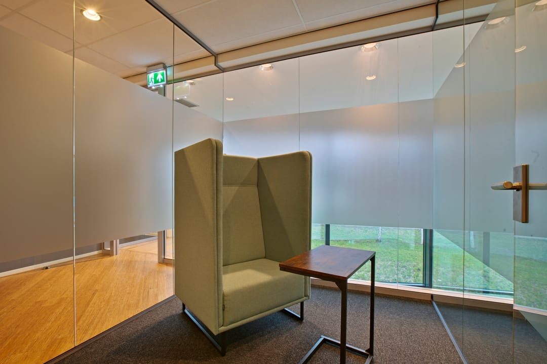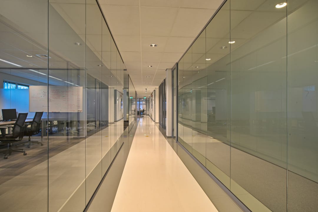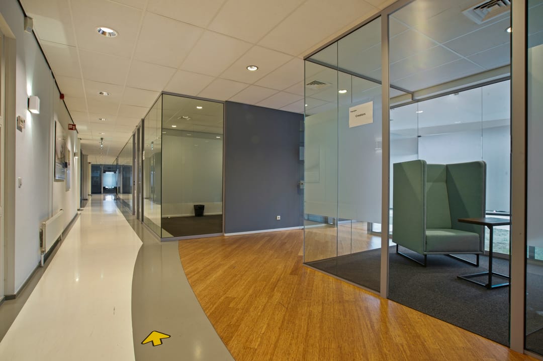-representatieve kantoorkamers deels voorzien van glazen wanden;