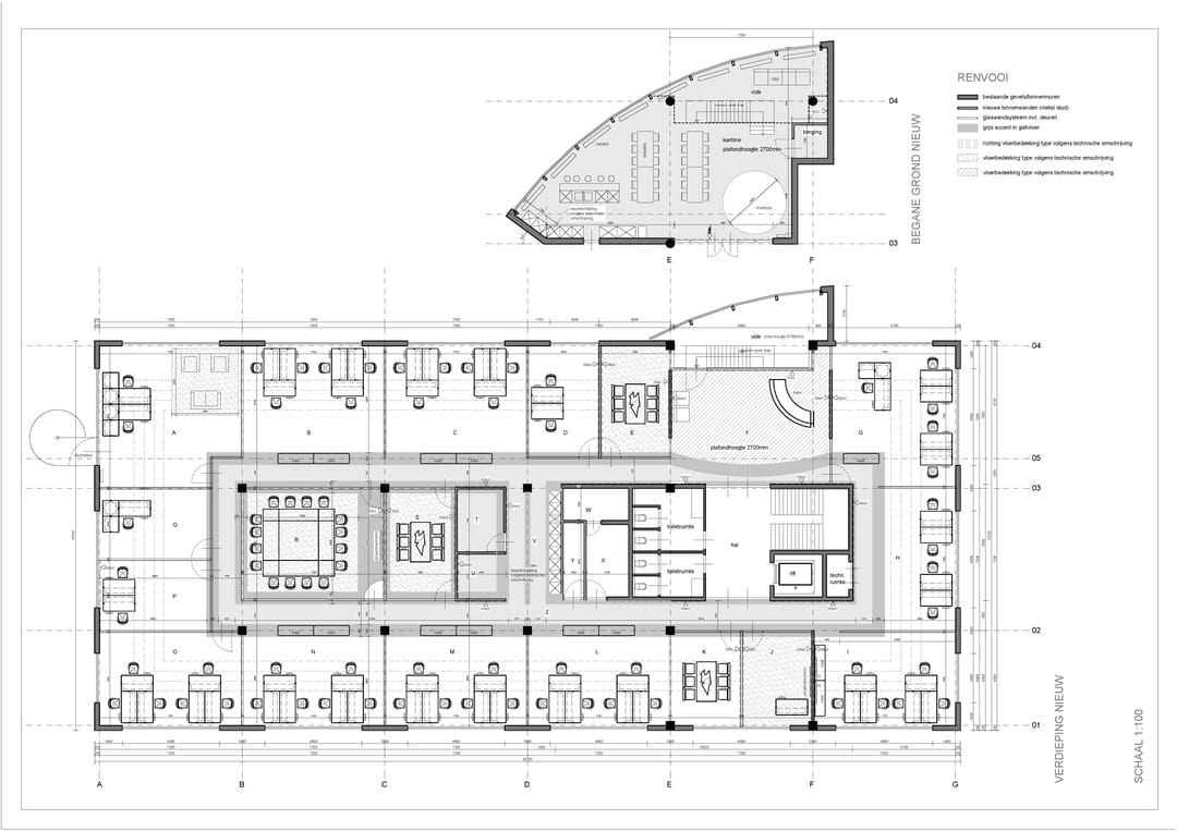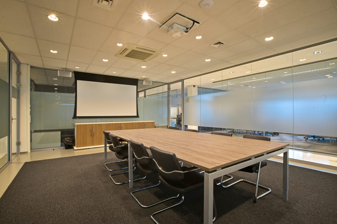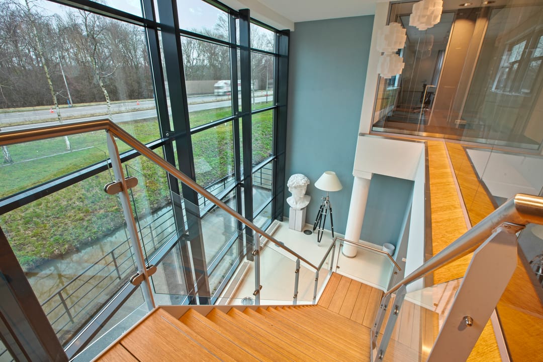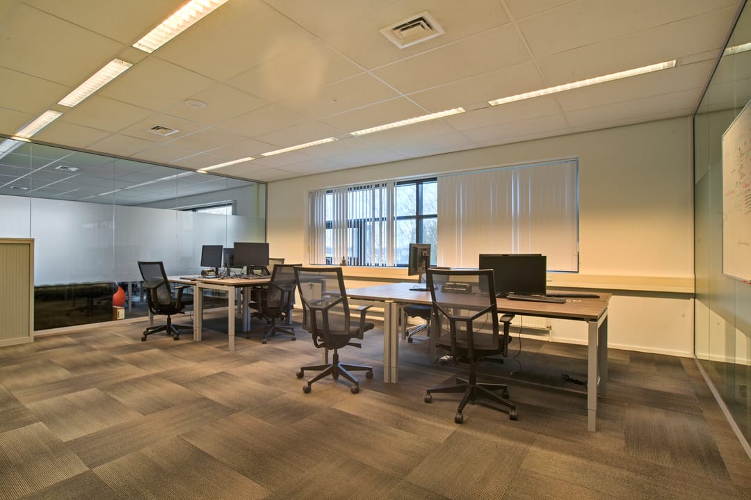 -representatieve kantoorkamers deels voorzien van glazen wanden;