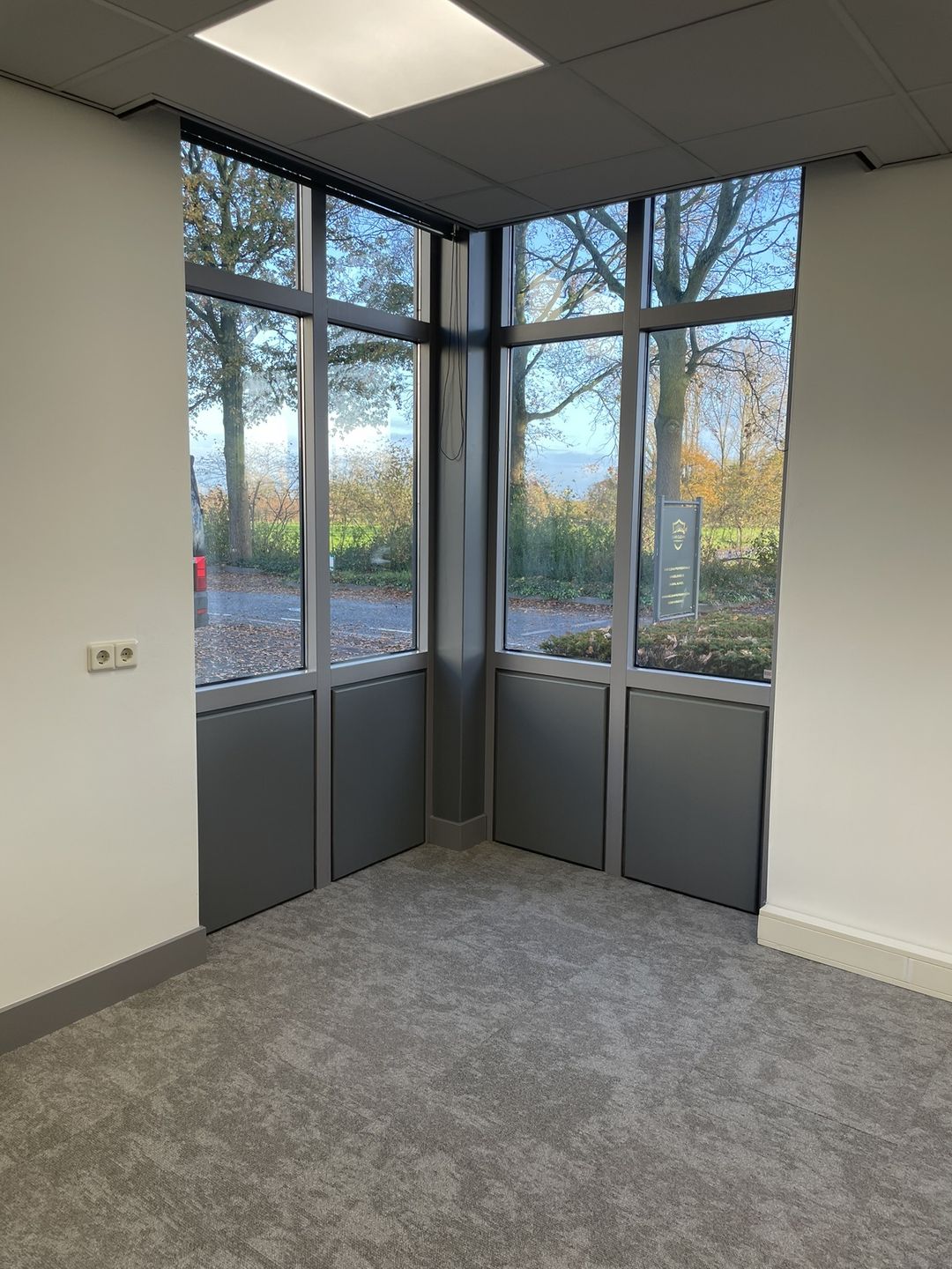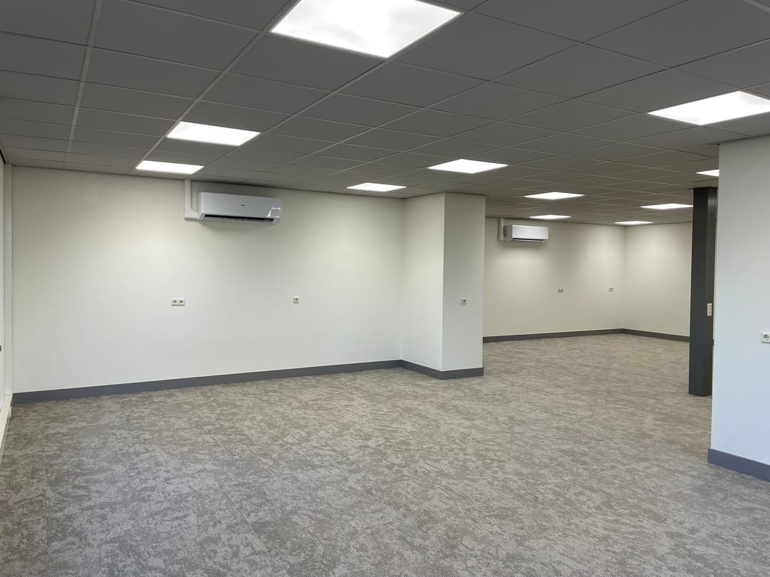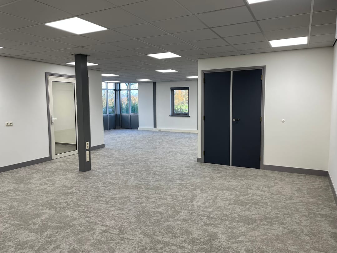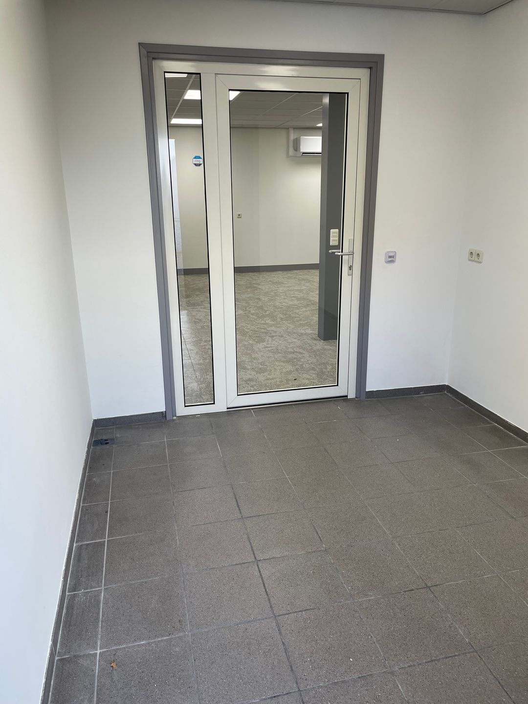 Binnenkomst via dubbele toegangsdeur in ruim portaal. Vanuit dit portaal stap je binnen in de royale, hoogwaardig afgewerkte kantoorruimte. De kantoorruimte is voorzien van nieuw schilderwerk, nieuwe akoestische plafondplaten, nieuwe rolgordijnen, twee airco’s voor koelen én verwarmen, een nieuwe tapijtvloer en een handige inbouwkast. Vanuit het kantoor betreed je de pantry met keuken voorzien van koelkast, inductie kookplaat, oven, vaatwasser en boiler. Aansluitend aan de pantry is een volledig nieuw toilet gerealiseerd.