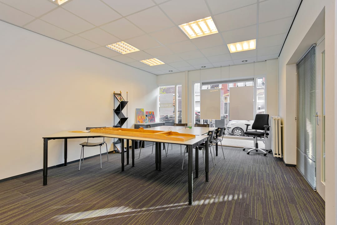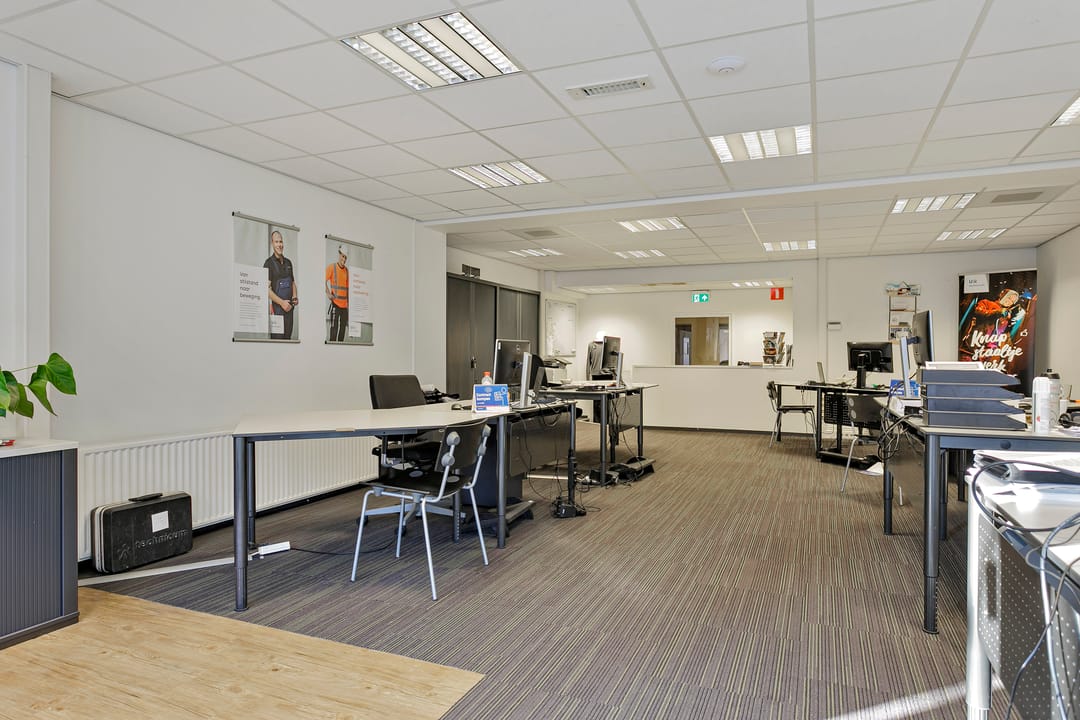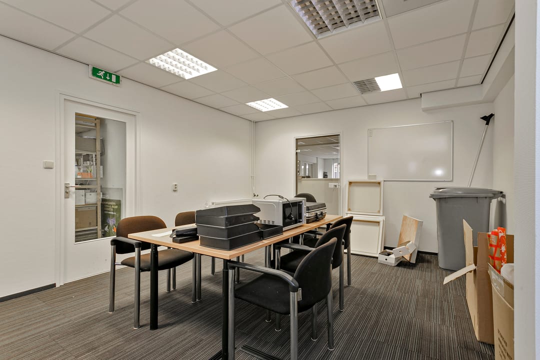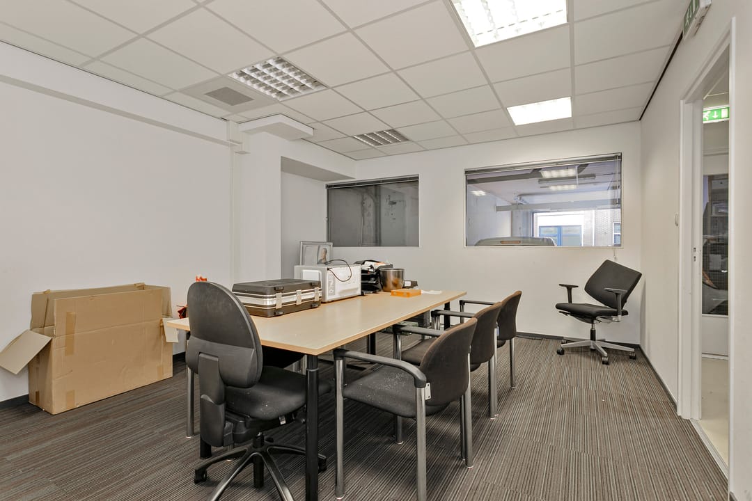 De unit beschikt over een ruime centrale kantoorruimte met plaats voor meerdere werkplekken. Daarnaast zijn er twee afsluitbare kantoorruimtes, geschikt als kantoor of spreekkamer. Verder is het pand voorzien van een separate pantry, een toilet met voorportaal en wastafel, en een praktische berging.
