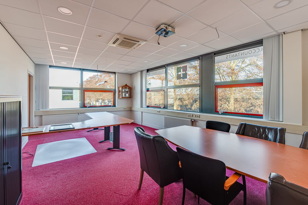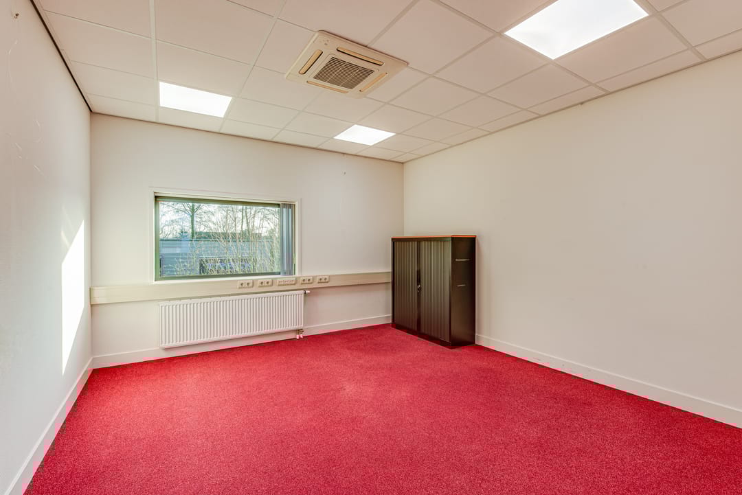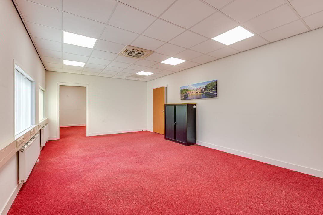 De kantoorruimte is als volgt ingedeeld: entree op de begane grond, trap naar de verdieping, meerdere kantoorkamers variërend in grootte, een vergaderruimte, en beschikt over een pantry en toiletgroep. De kantoorruimte is voorzien van systeemplafonds met verlichtingsarmaturen, airconditioning, centrale verwarming, kabelgoten met elektra en bekabeling.