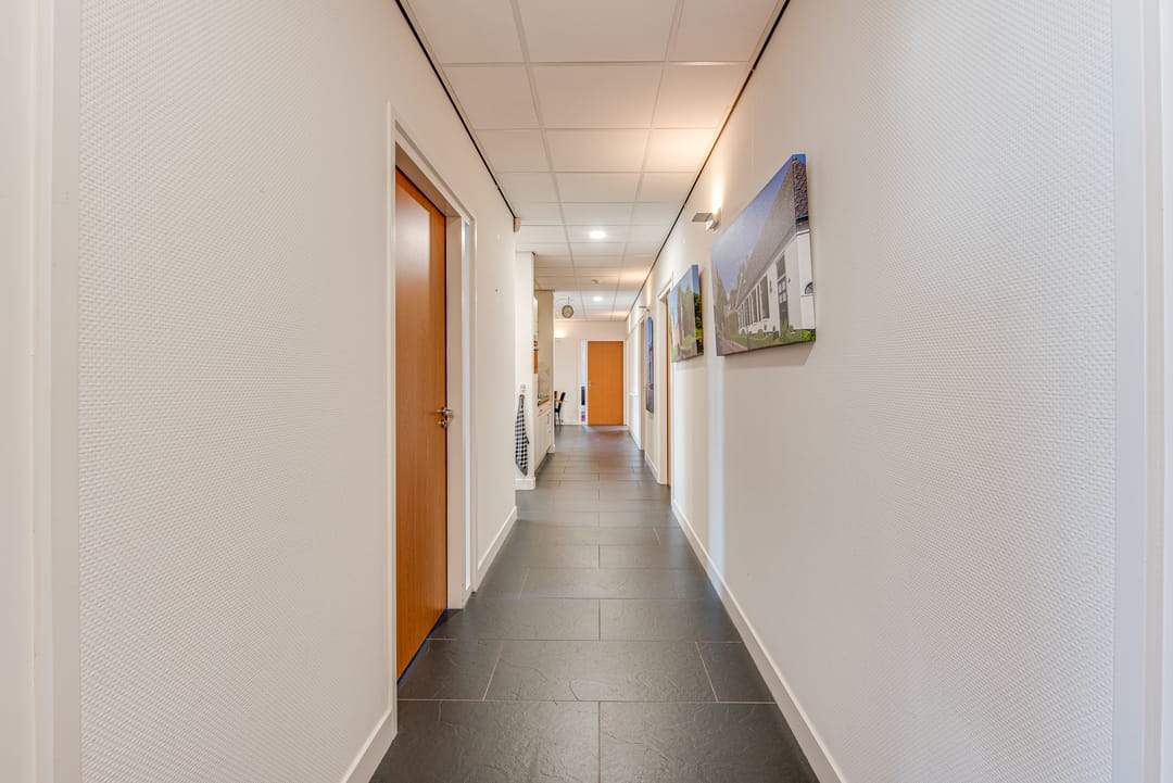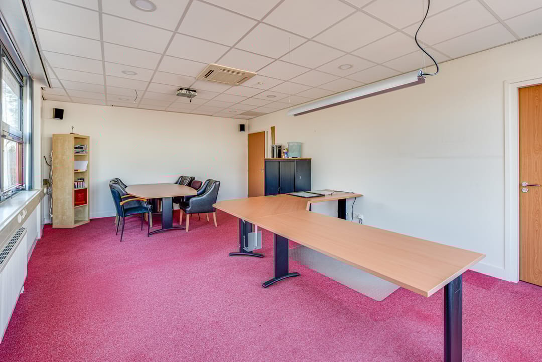 Het pand, gebouwd in 2008, heeft veel lichtinval en een open uitzicht, wat zorgt voor een prettige werkomgeving.
