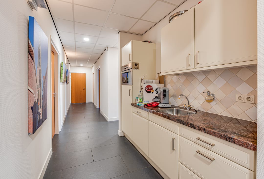 - Airconditioning, inbouwarmaturen, te openen ramen, kabelgoten, systeemplafond, toilet, pantry, verwarming en kamerindeling