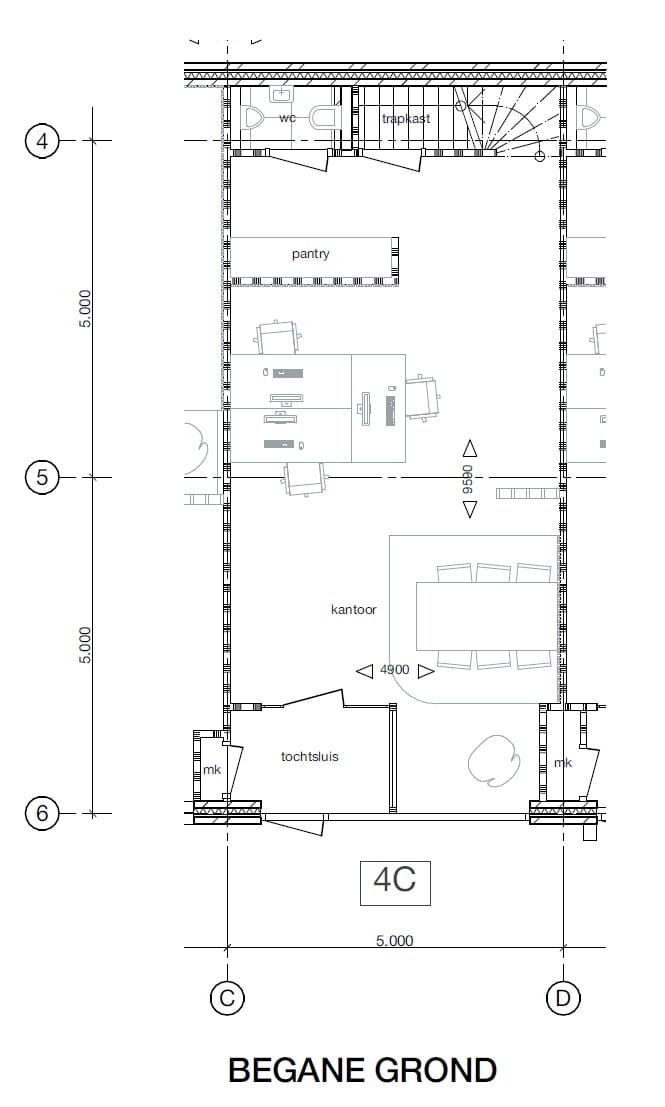 Begane grond: entree, twee kantoorruimtes, pantry en toilet met fontein.