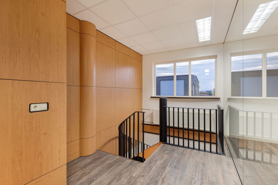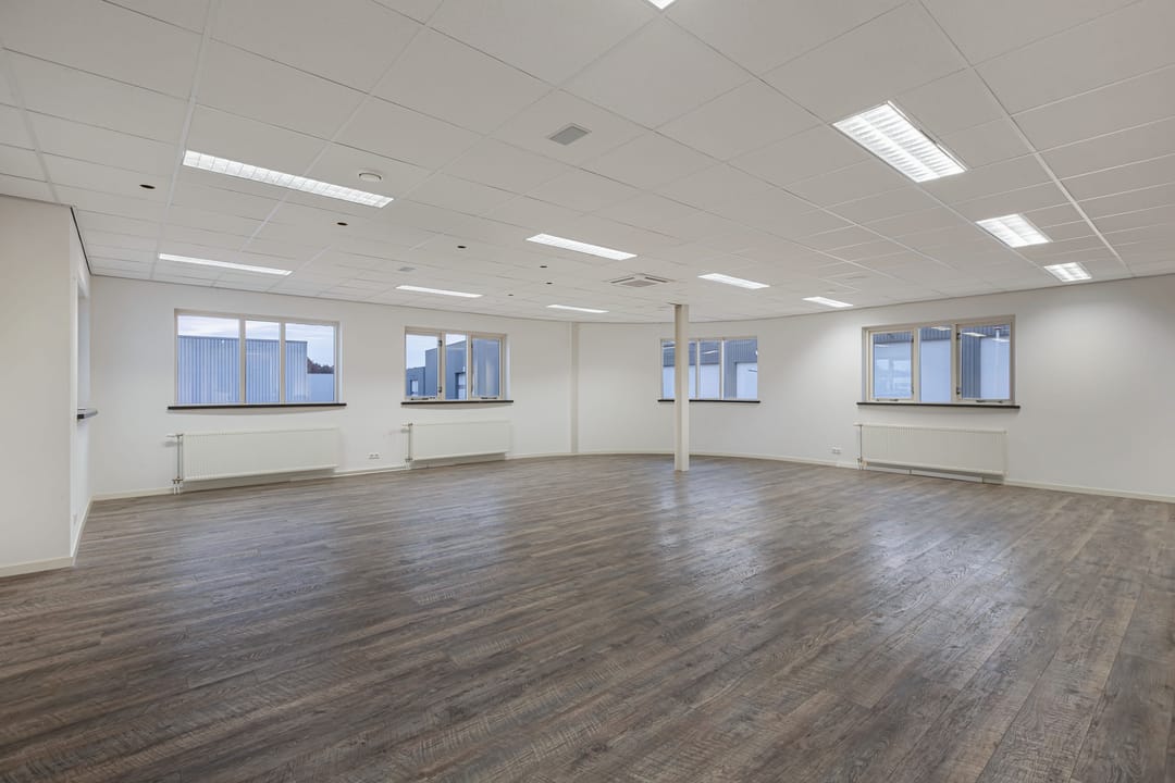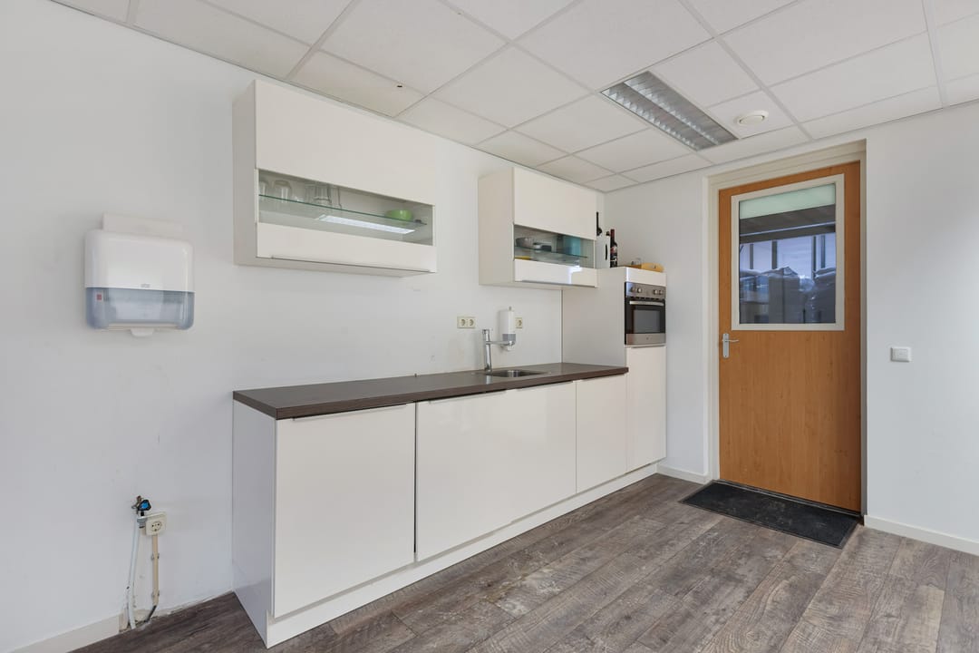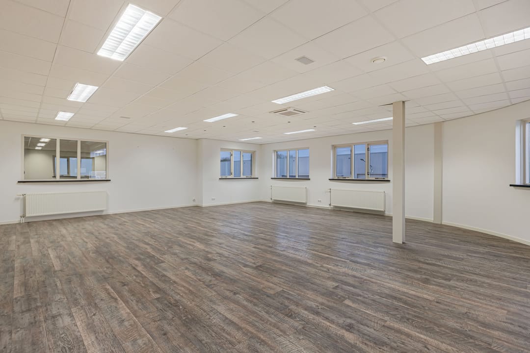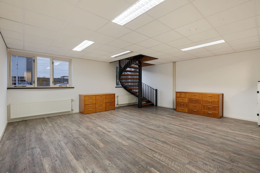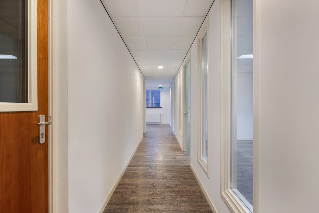 Bij binnenkomst betreedt u de centrale entree met een ruime hal die toegang biedt tot de diverse ruimten op de begane grond. Hier bevinden zich twee kantoorruimten van respectievelijk circa 24 m² en 36 m², beide voorzien van prettig daglicht en flexibel in te richten. Daarnaast is er een royale kantine van circa 32 m² aanwezig, ideaal geschikt als pauzeruimte of informele ontmoetingsplek. Op deze verdieping treft u tevens een nette toiletgroep.