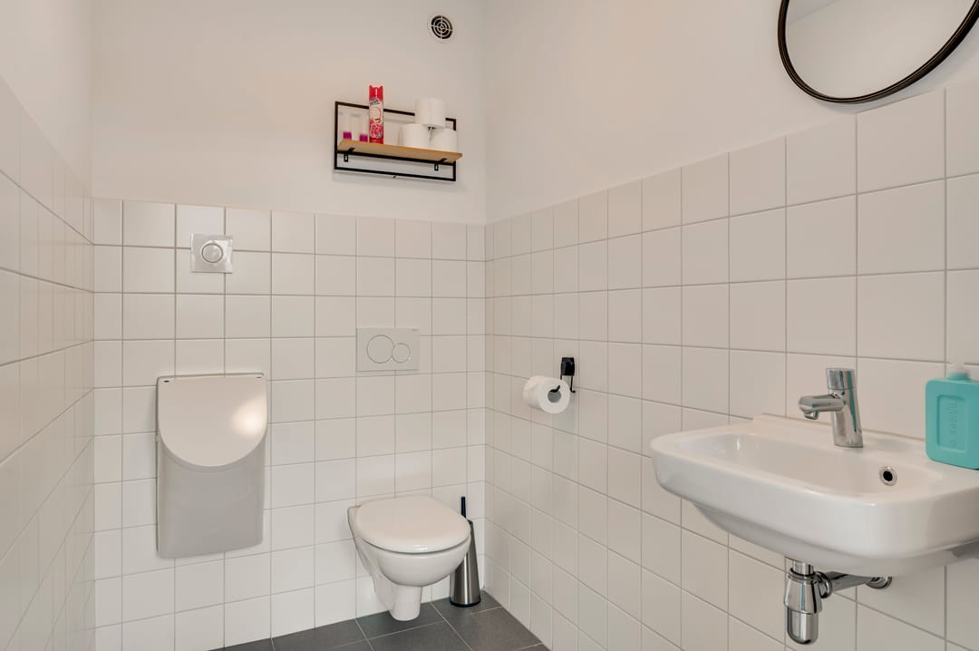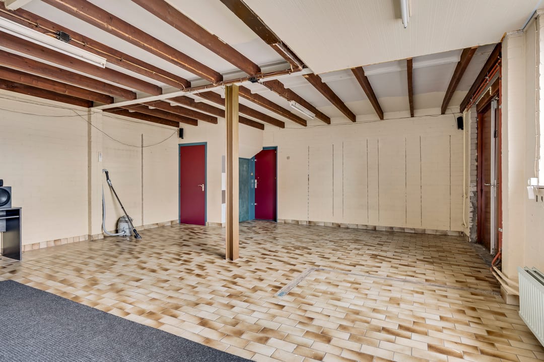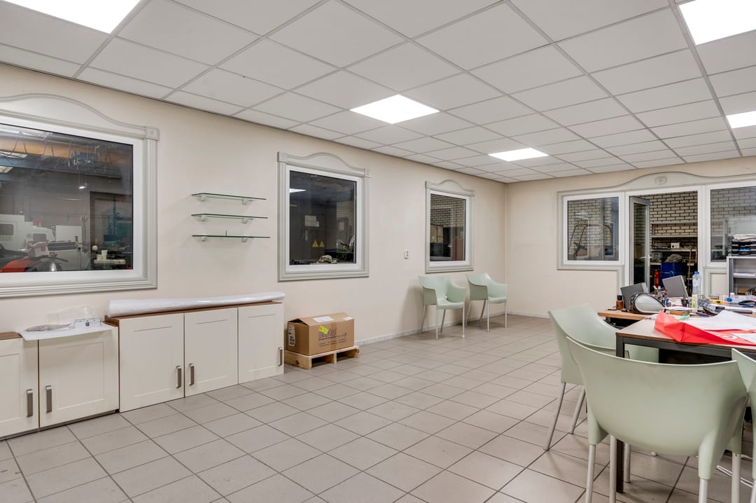 - Lichtstraten, overheaddeuren, krachtstroom, betonvloer, toilet, pantry en inbouwarmaturen
