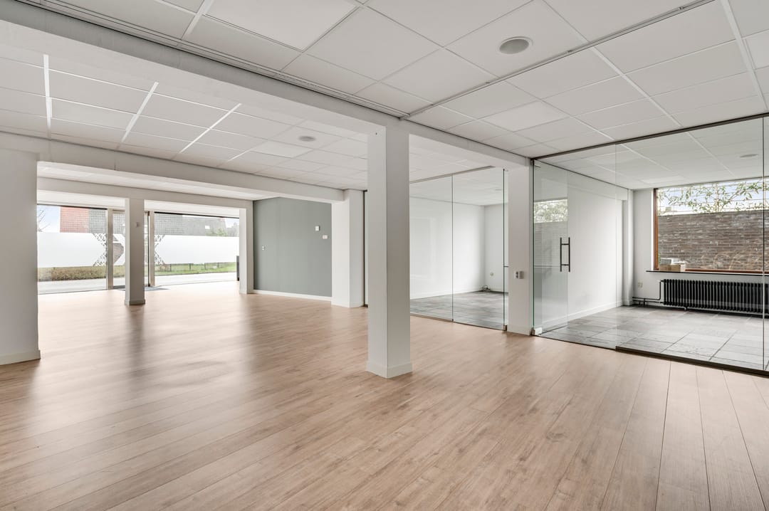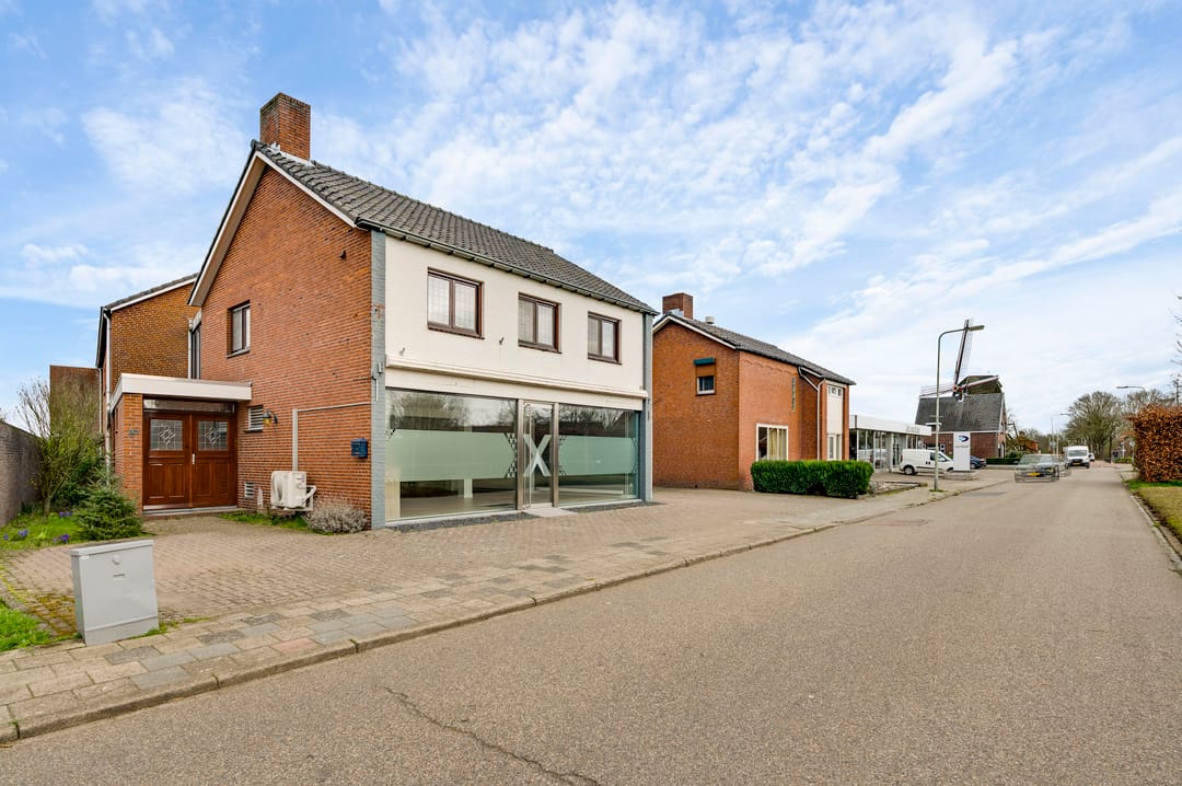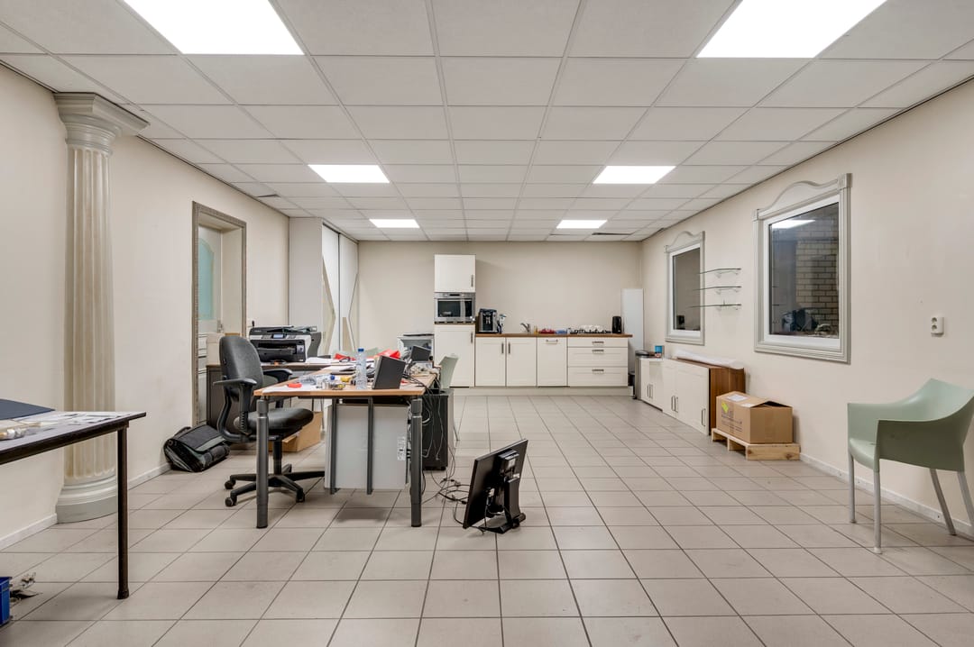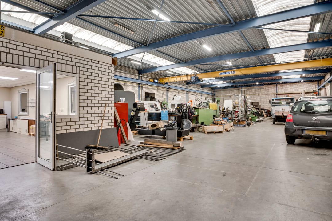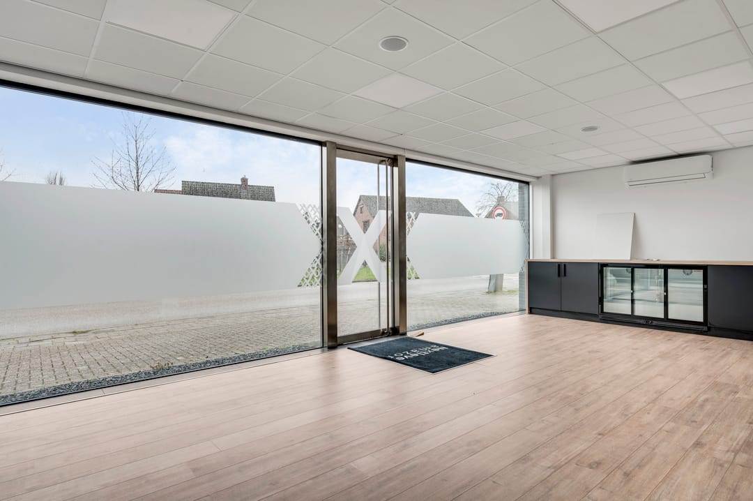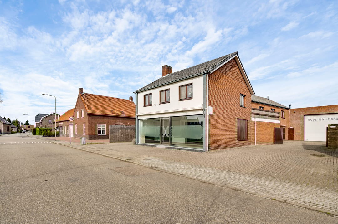 Hoogwaardig afgewerkte bedrijfsruimte met voldoende opslagruimte en de beschikbaarheid over een moderne kantoor-/winkelruimte in Stramproy.