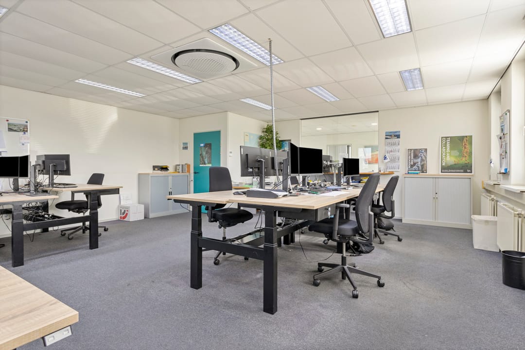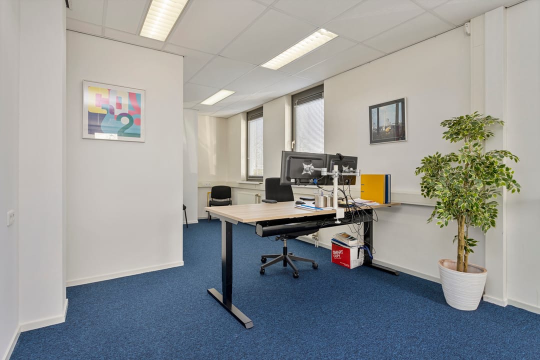 De ruimte bestaat uit verschillende kantoorkamers en een kantoortuin.