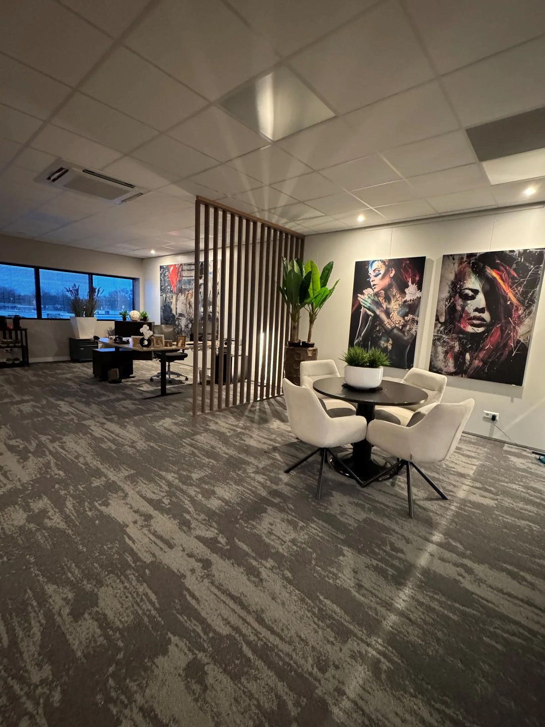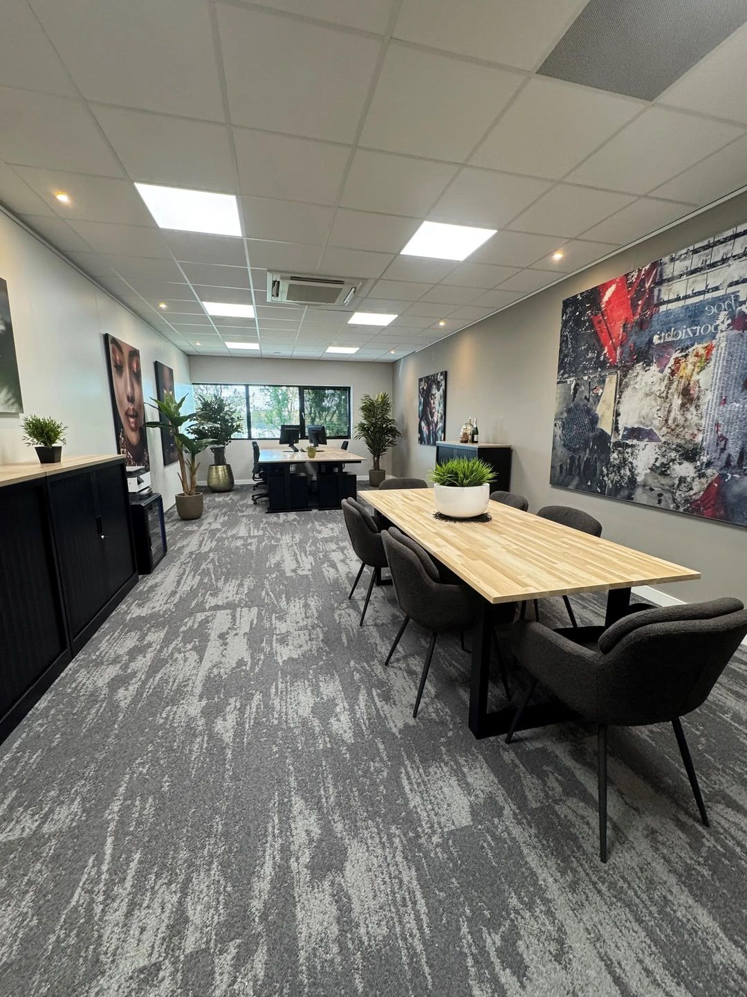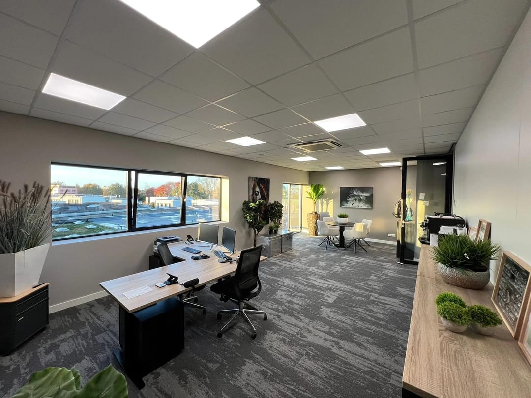 • Modern design: Onze kantoorruimtes zijn stijlvol en professioneel ingericht, wat een productieve en aangename werkomgeving creëert.