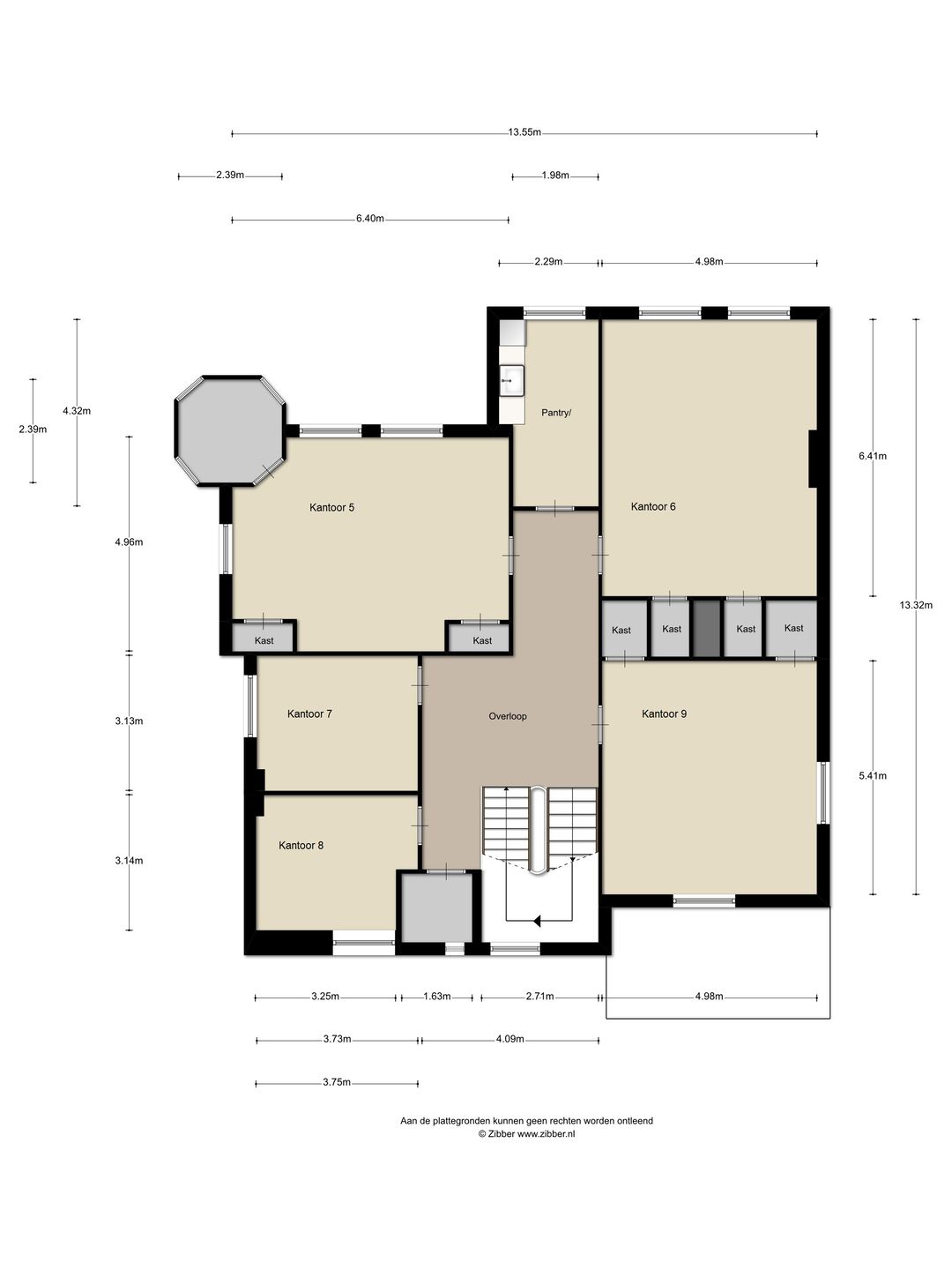 begane grond kantoor: ca. 98 m²