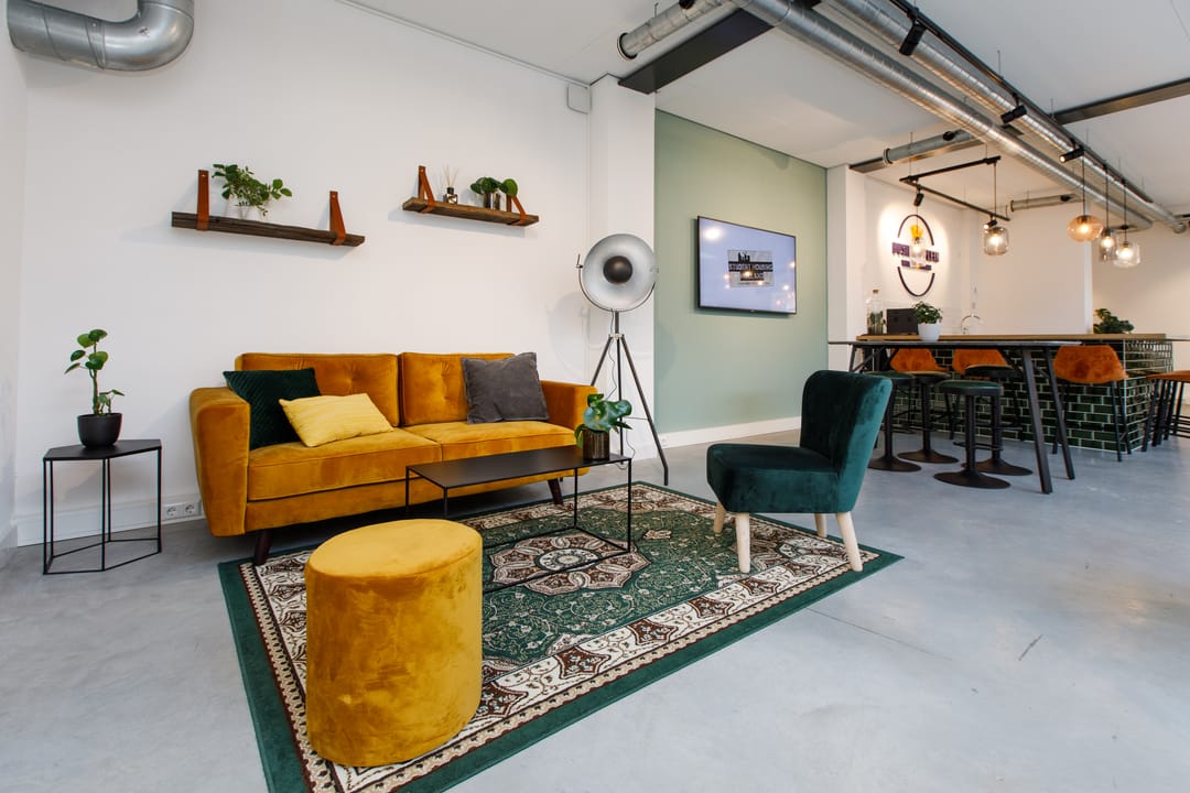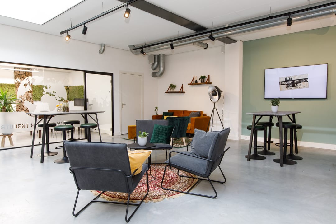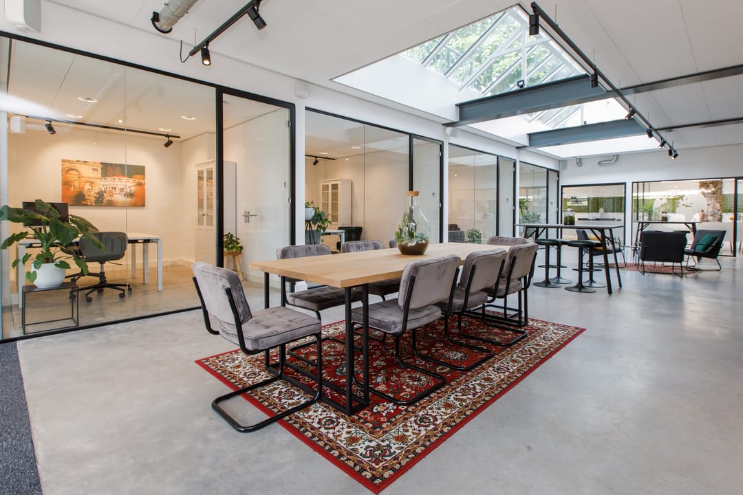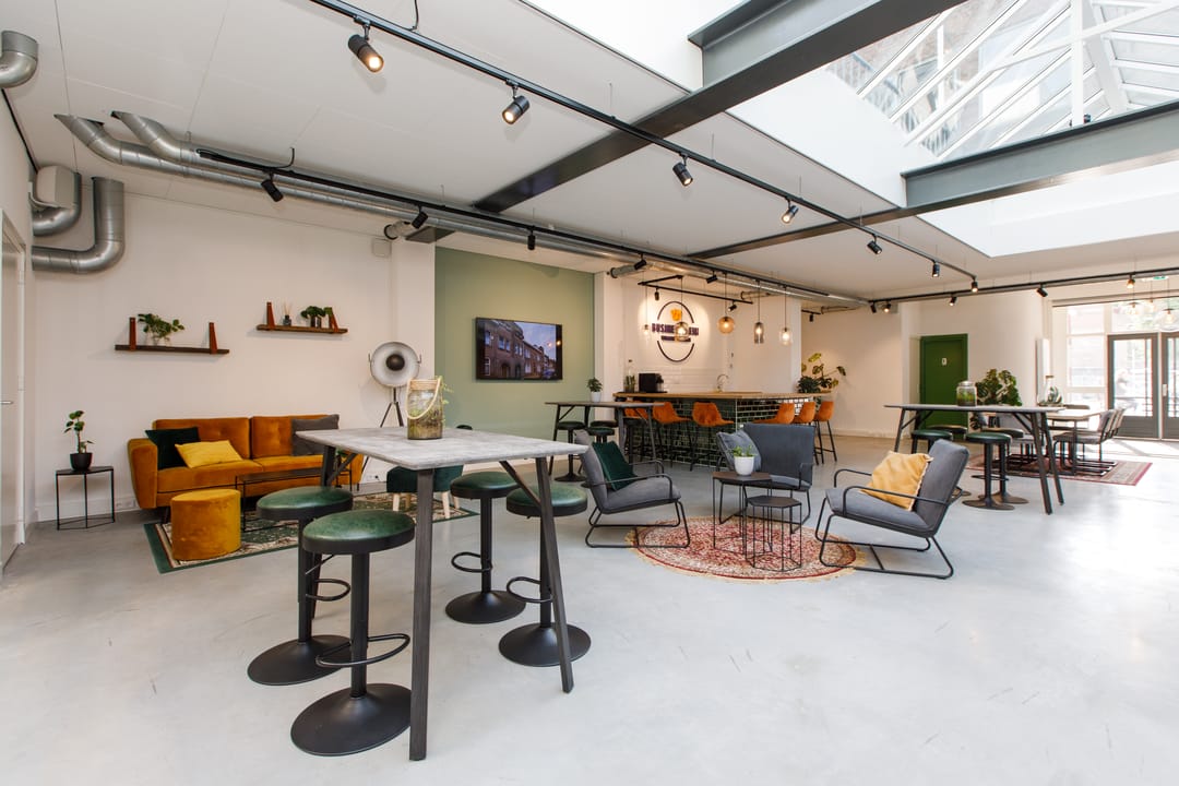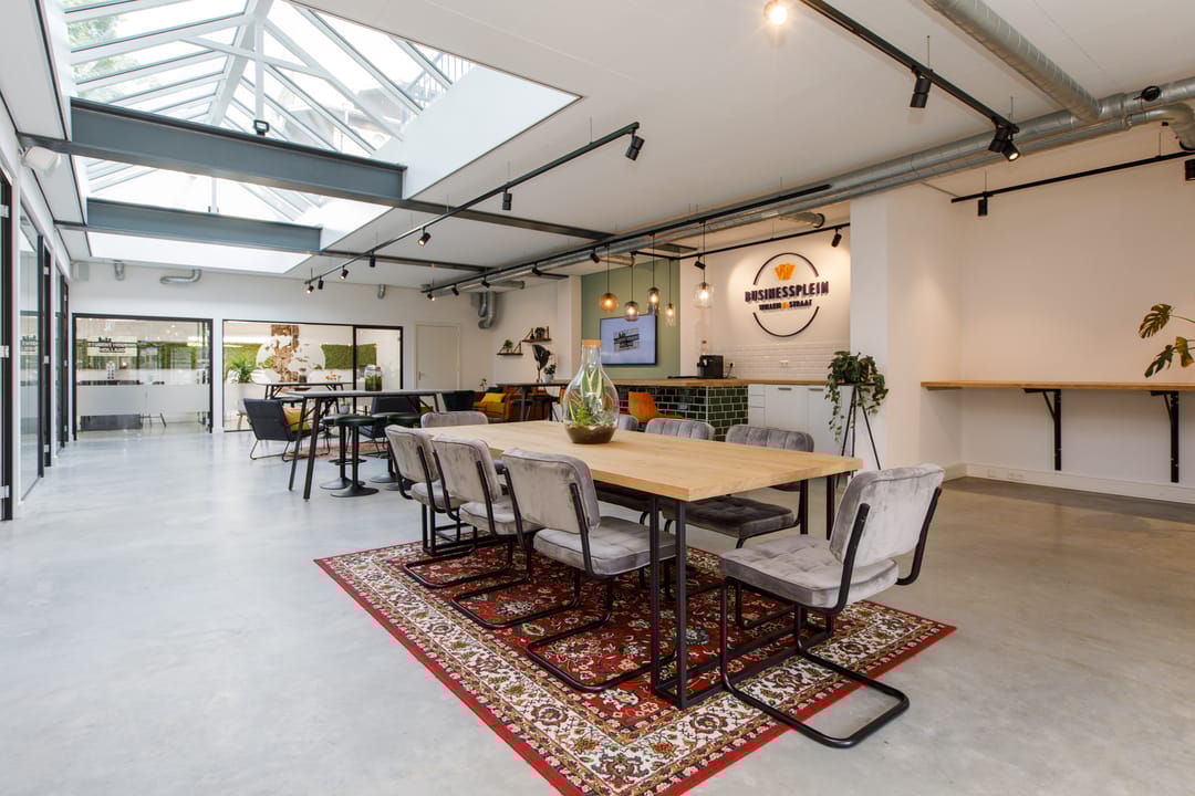 - volledig ingerichte gemeenschappelijke ruimte (130m2) met diverse mogelijkheden zoals het houden van bijeenkomsten en presentaties of te gebruiken als flexwerkplekken voor u en uw personeel