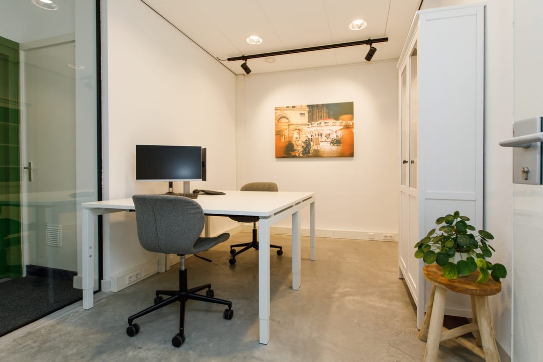 De kantoorruimte wordt volledig gemeubileerd aangeboden en bevindt zich op de begane grond aan de voorzijde van het pand, een uitstekende locatie. U hoeft enkel uw laptop mee te nemen en u kunt direct aan de slag! Uw bureau staat zelfs al te wachten. De kantoorruimte is prima geschikt voor 2 personen. Wilt u in een aparte ruimte kunnen vergaderen? Ook dat kan op het Businessplein Willem II-straat! Naast de grote gemeenschappelijke ruimte is er nog een afgesloten representatieve vergaderruimte beschikbaar.