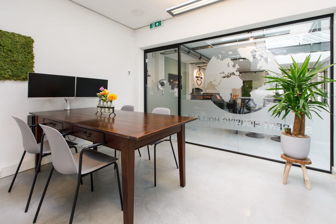 - afgesloten vergaderruimte met PC en twee computerschermen