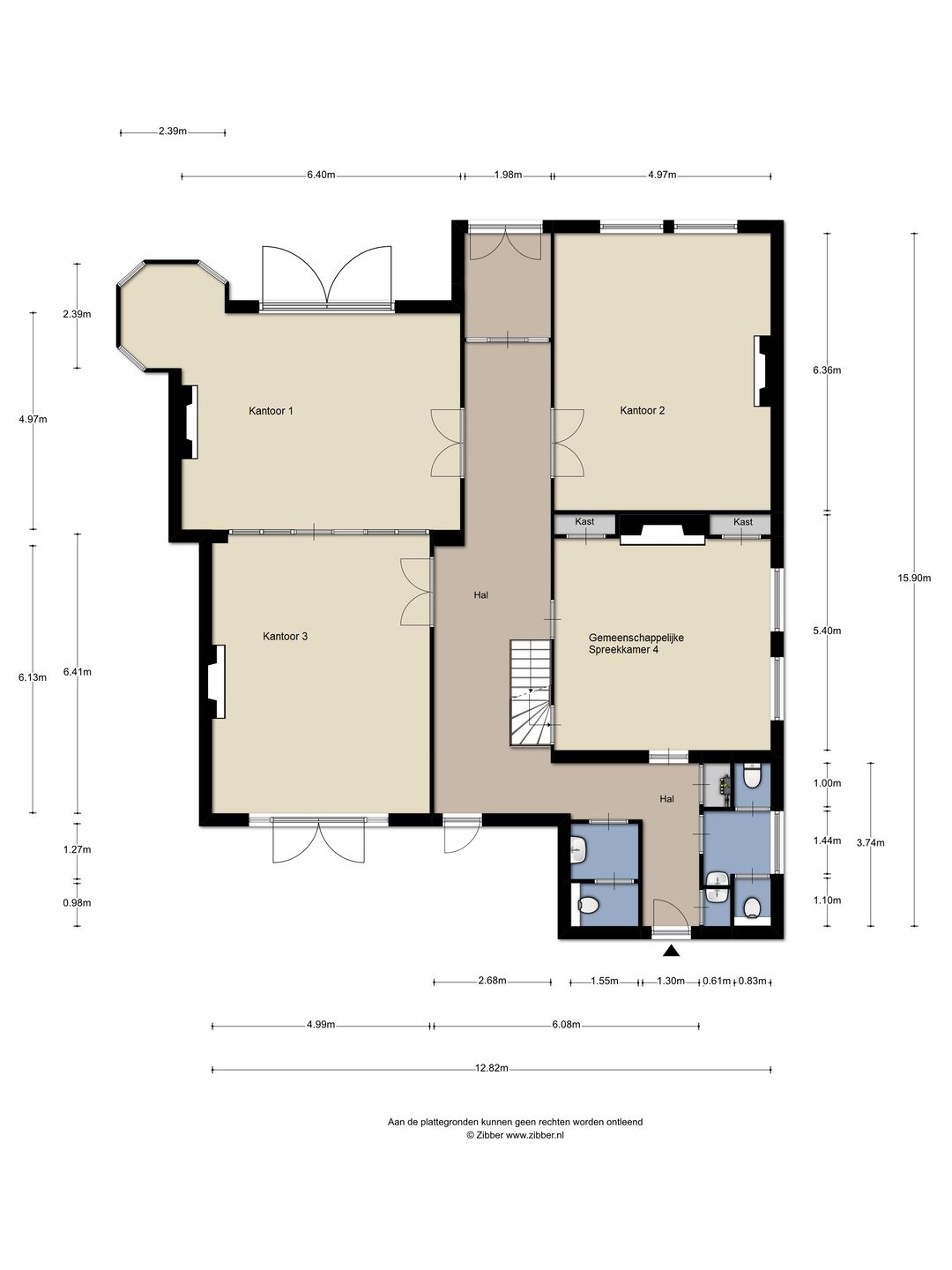 - Kantoorkamer 5: ca. 36 m2 € 1.191,67