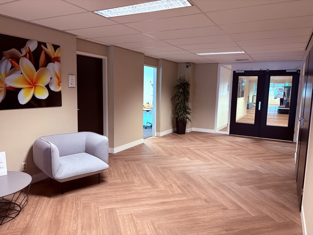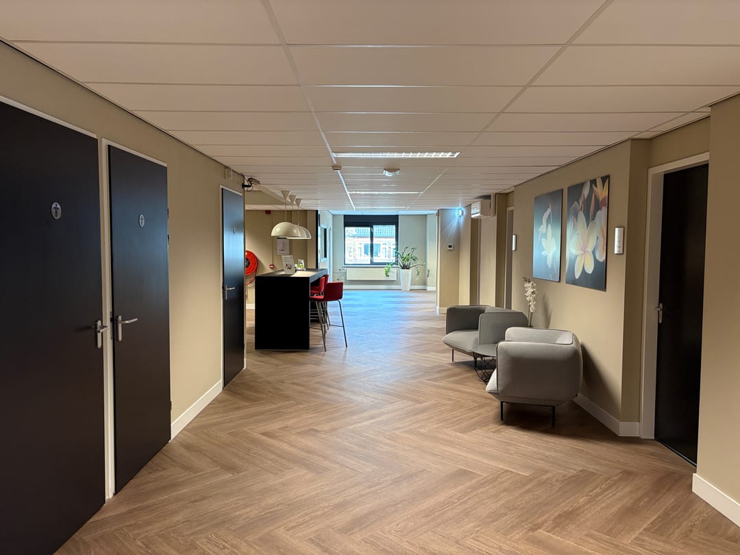 • ingerichte shared ruimtes zoals: ontvangstruimte, wachtruimte, loungeruimte, breakout room, vergaderruimte (meeting room en boardroam), pantry en koffiebar;
