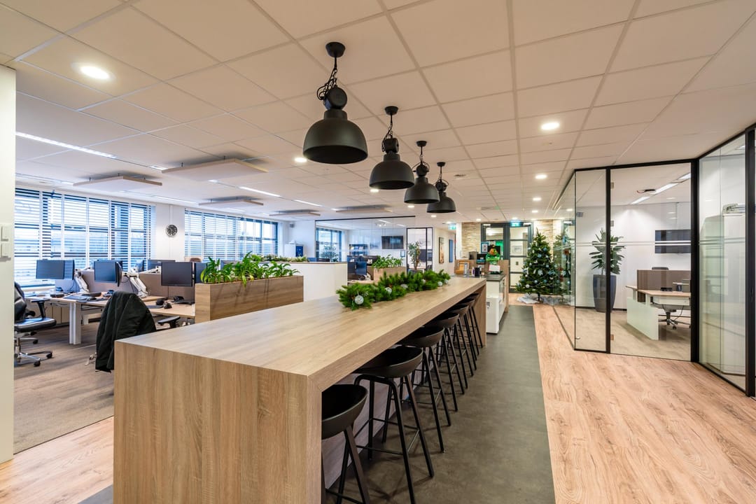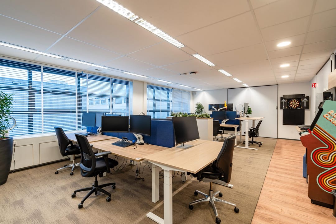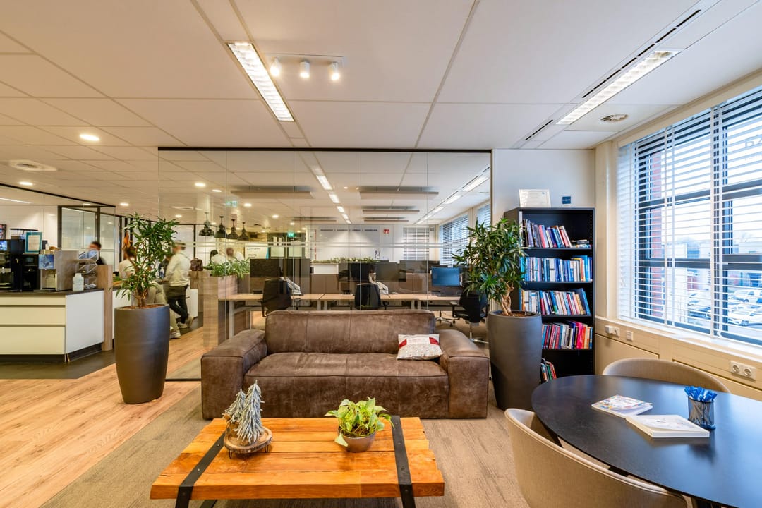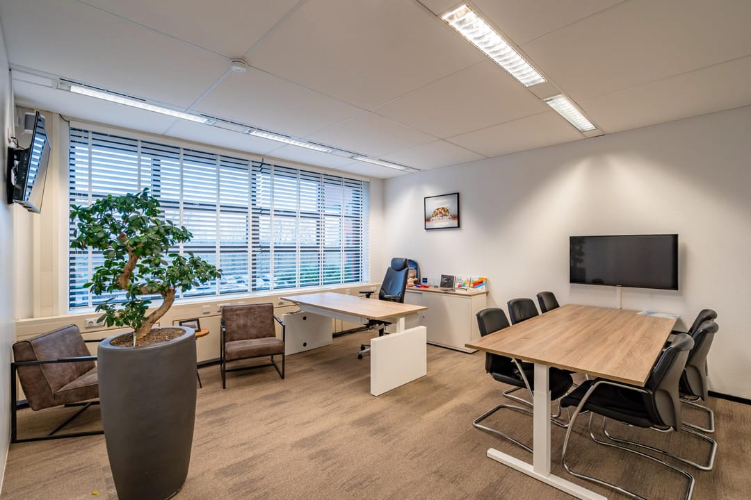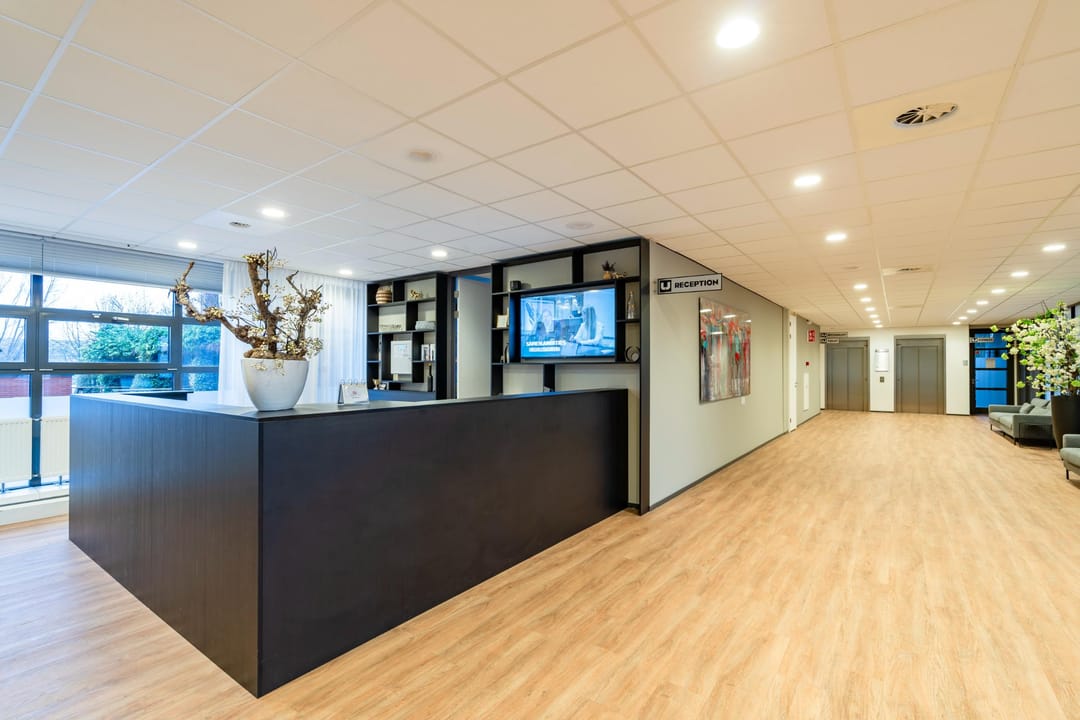 De kantoorruimte bevindt zich op de eerste verdieping van het modern bedrijfsverzamelgebouw U-building. Dankzij de grote raampartijen en hoge plafonds is er veel natuurlijk licht en een ruimtelijk gevoel. De huidige indeling combineert open werkplekken met afsluitbare vergaderkamers en stille werkruimtes, waardoor de ruimte geschikt is voor diverse werkvormen.