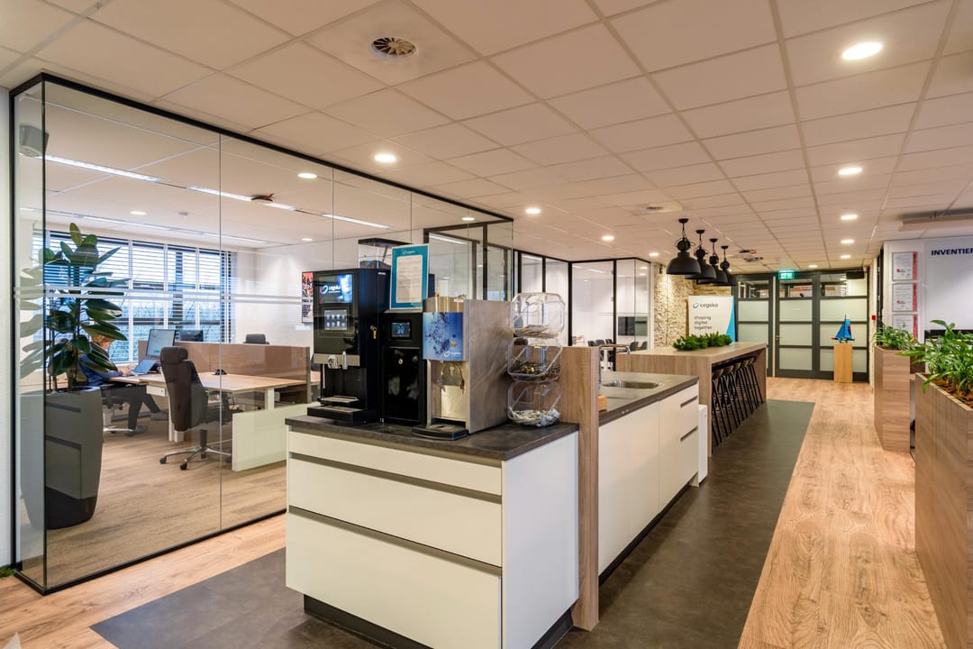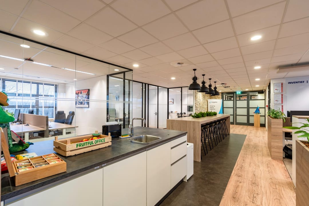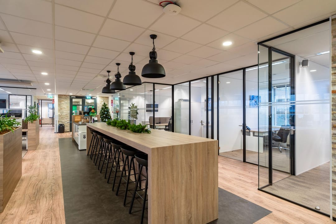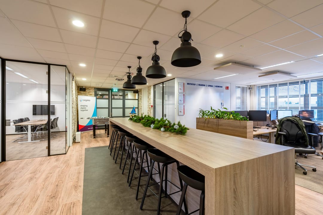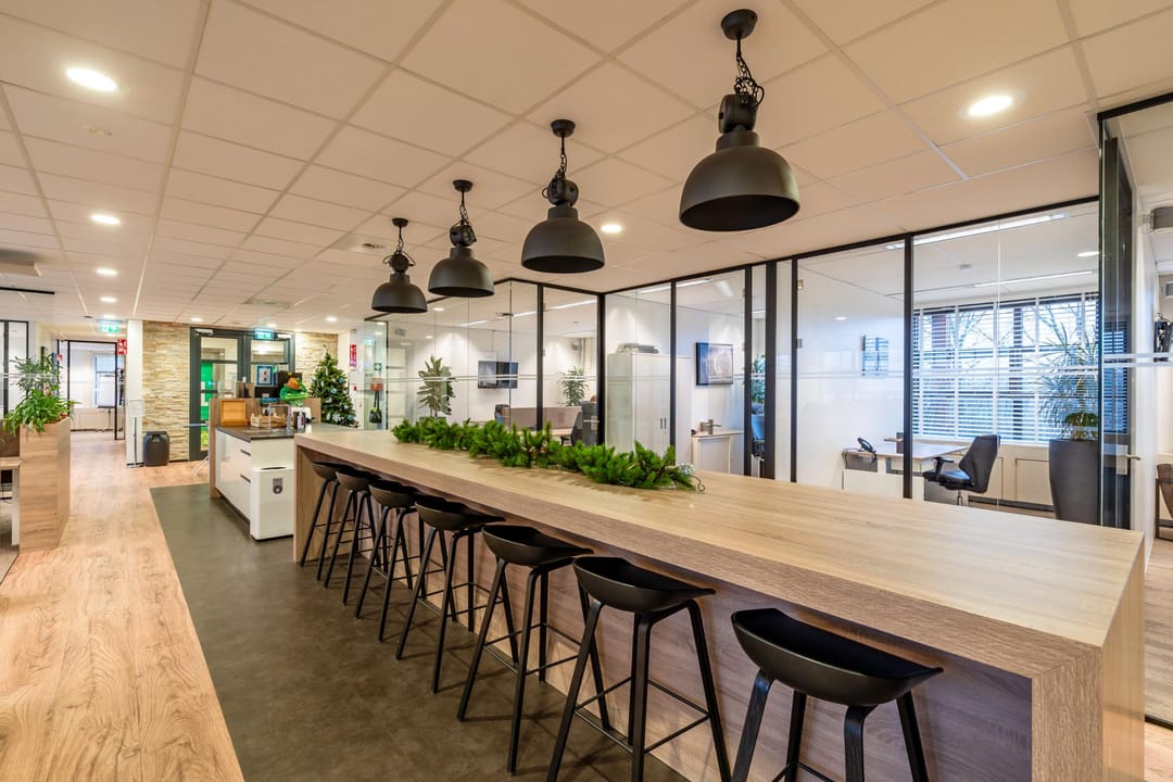 De kantoorruimte bevindt zich op de eerste verdieping van het modern bedrijfsverzamelgebouw U-building. Dankzij de grote raampartijen en hoge plafonds is er veel natuurlijk licht en een ruimtelijk gevoel. De huidige indeling combineert open werkplekken met afsluitbare vergaderkamers en stille werkruimtes, waardoor de ruimte geschikt is voor diverse werkvormen.