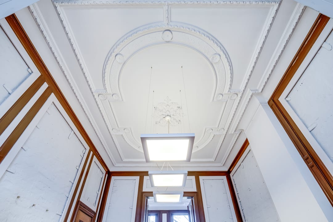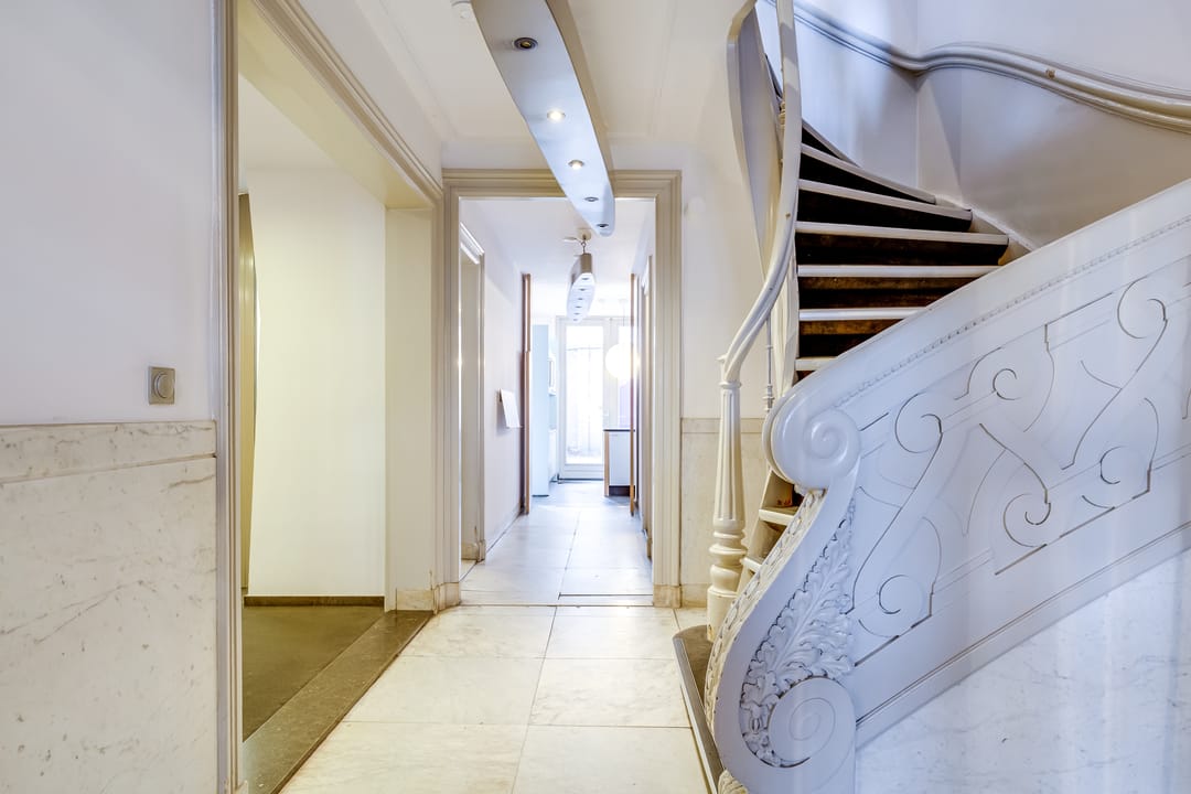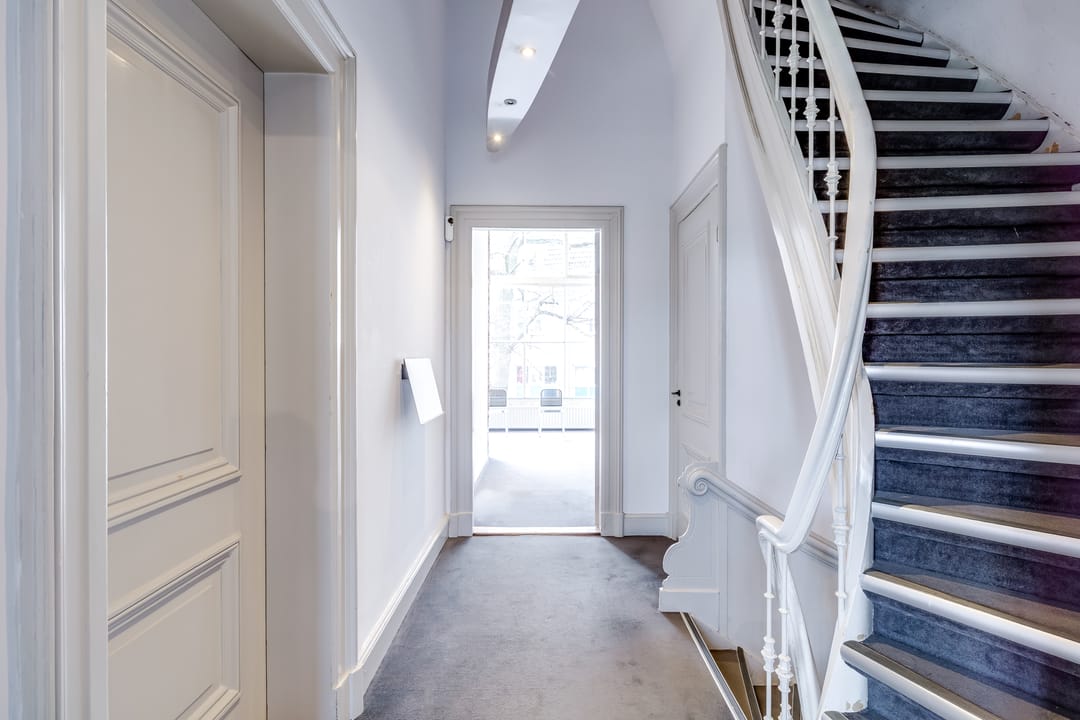 - Veel originele elementen behouden, zoals ornamentenplafonds en trappartijen