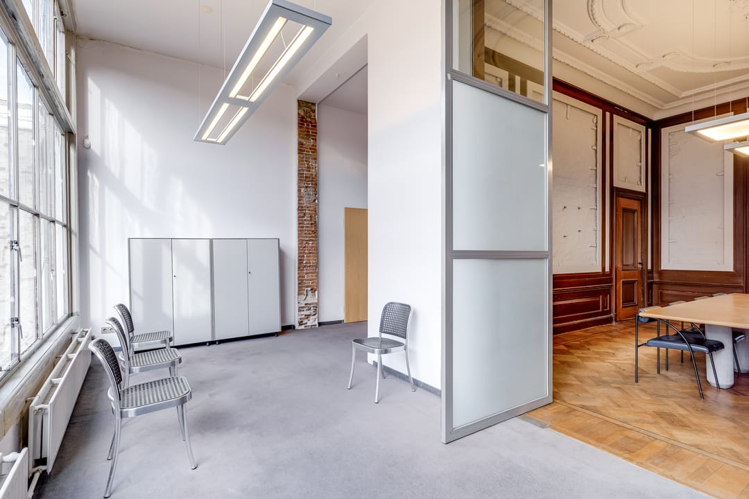 - Eerste en tweede verdieping: ruime kamers met hoge plafonds en veel daglicht, geschikt voor kantoor- en vergaderruimtes in verschillende groottes