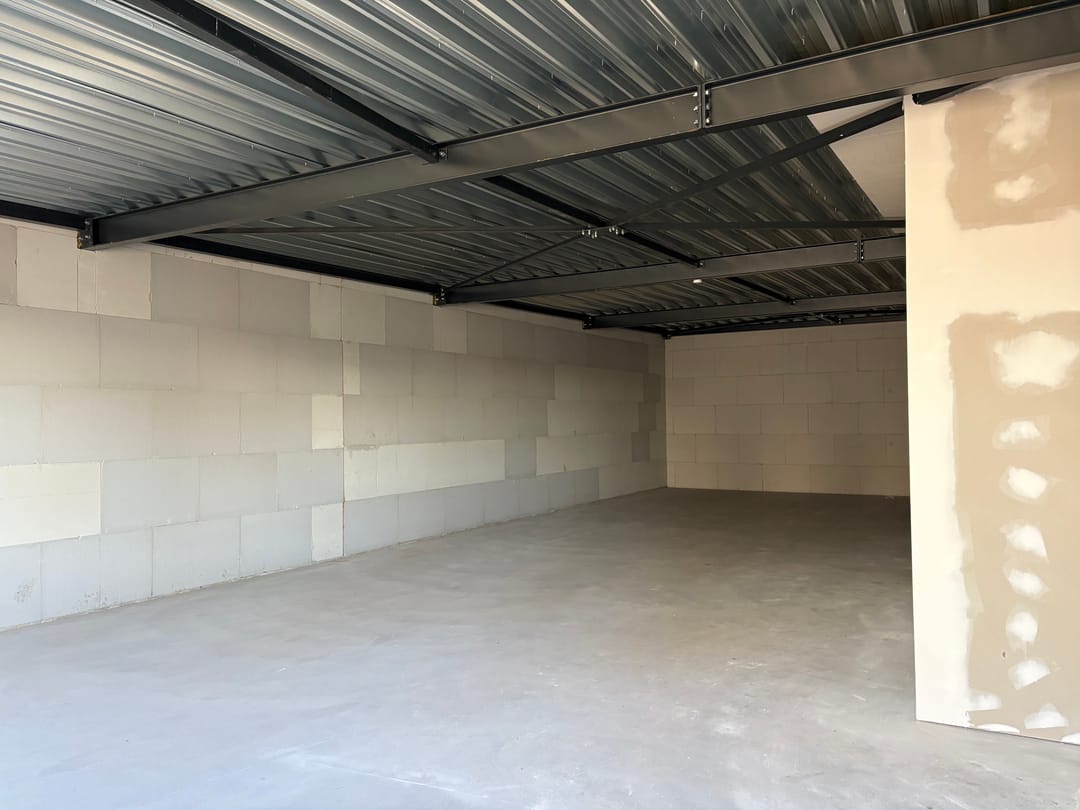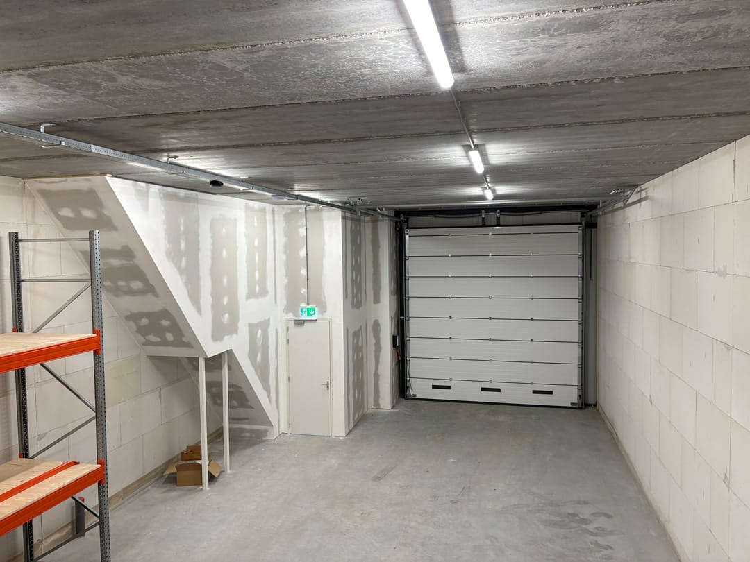 - Overheaddeuren, krachtstroom, betonvloer en toilet