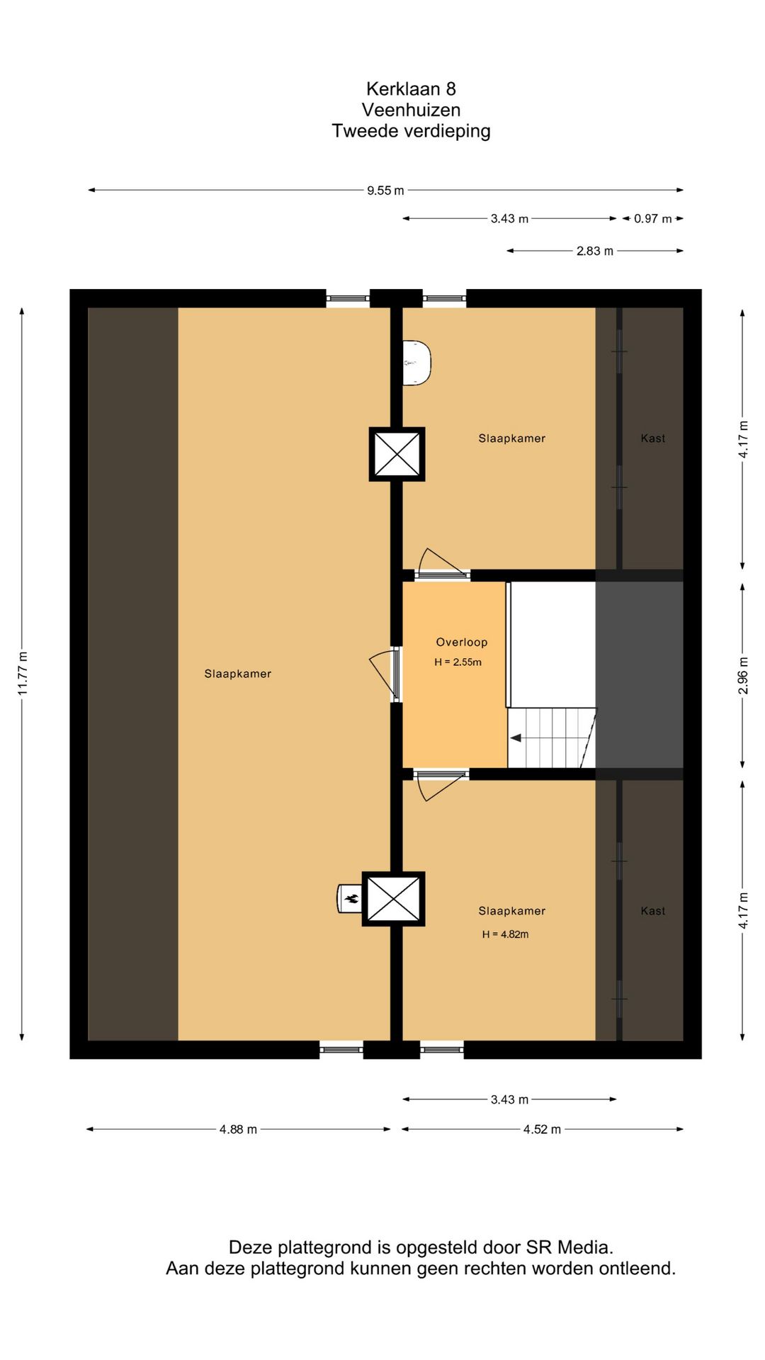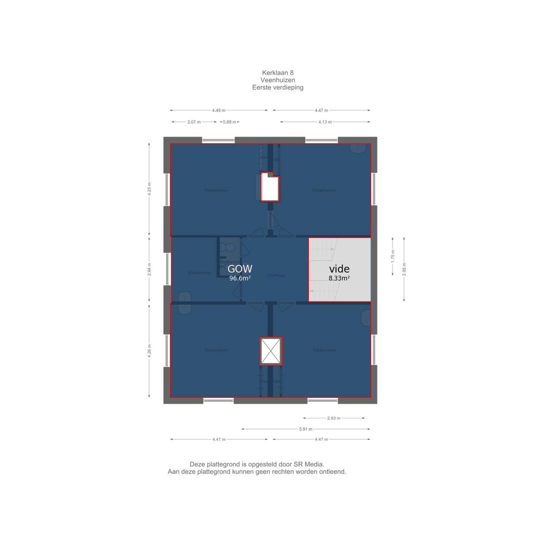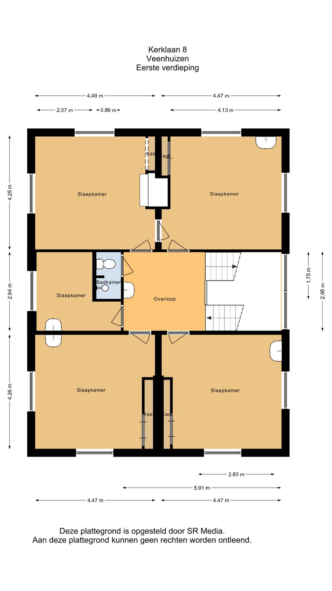 Verdieping: Op de verdieping liggen drie ruime slaapkamers, waarvan één met inbouwkasten, en een eenvoudige badkamer met douche, wastafel en toilet. De kamers zijn bereikbaar via een centrale overloop, die ook toegang biedt tot de zolder via een luik met vlizotrap. De kap is traditioneel uitgevoerd en deels geïsoleerd.