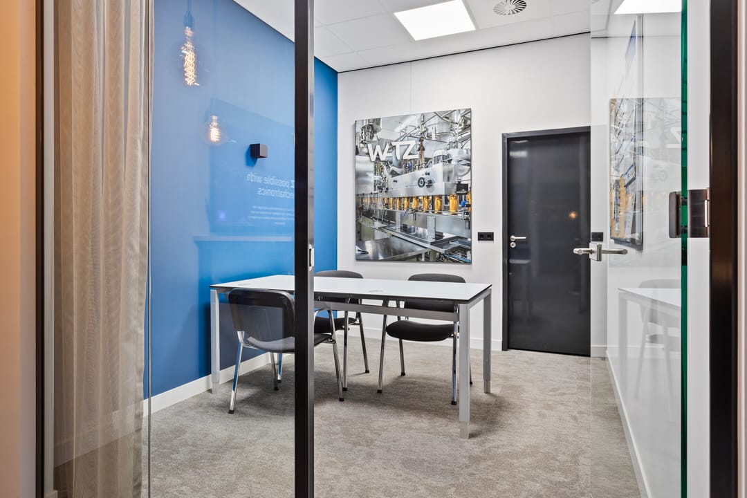 - glazen tussenwanden voorzien van in-between gordijnen;