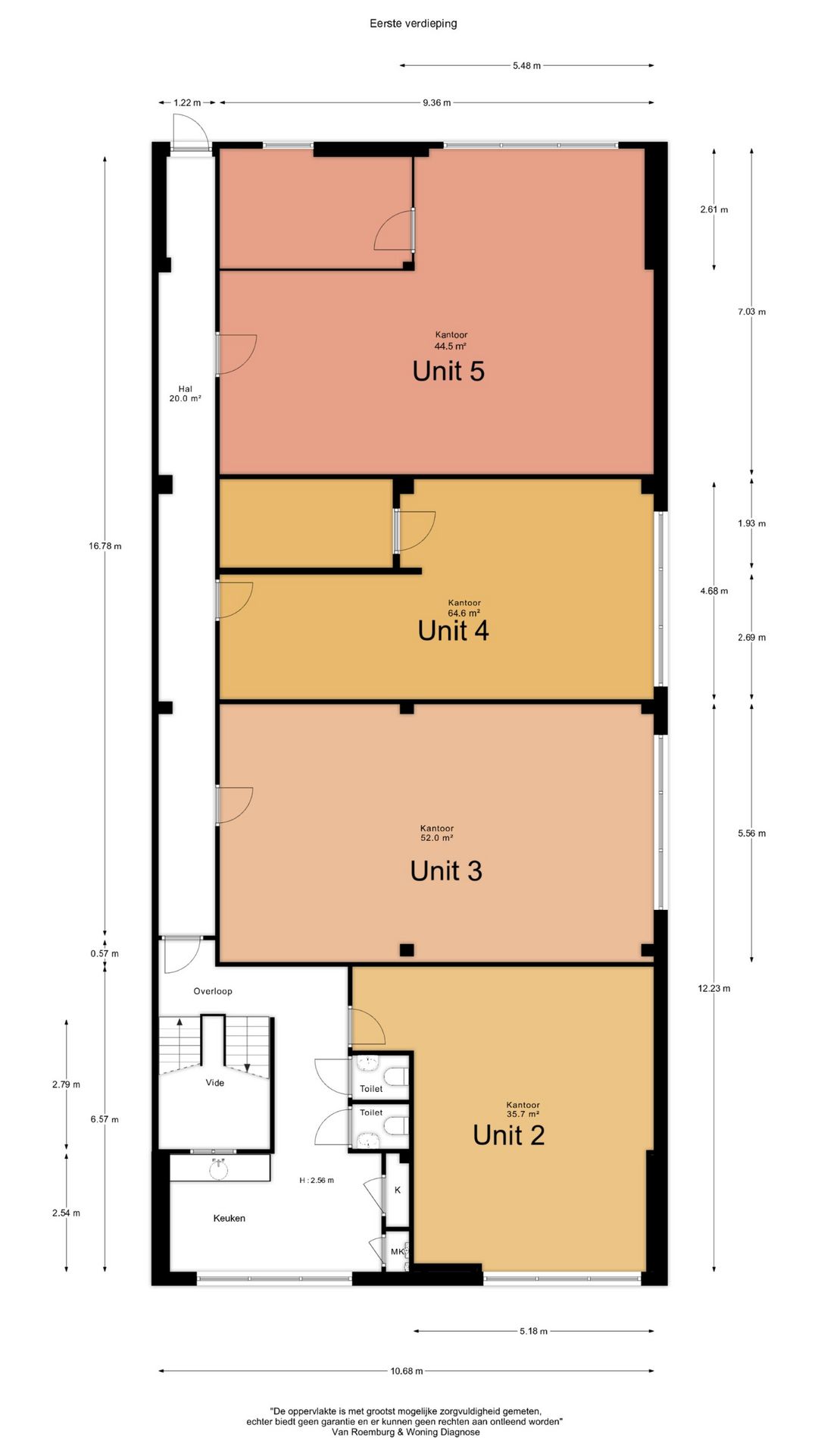 N.b.: "Het gehuurde" betreft de casco kantoorruimte incl. het aandeel in de algemene ruimte.