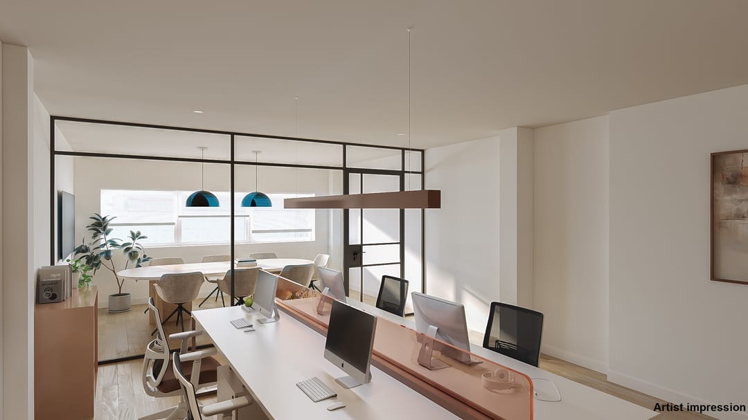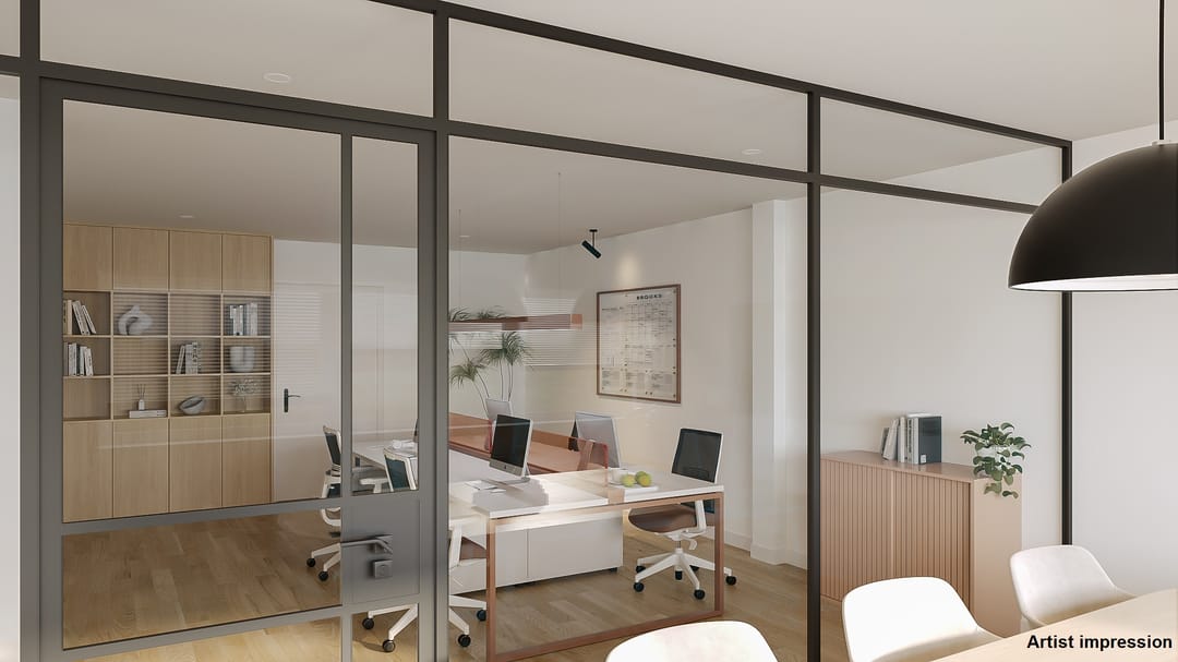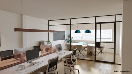 N.b.: De wanden van de ruimte worden witgeverfd opgeleverd, zoals op de artist impressions. Het huidige tapijt wordt verwijderd, een nieuwe vloer laten leggen is optioneel.