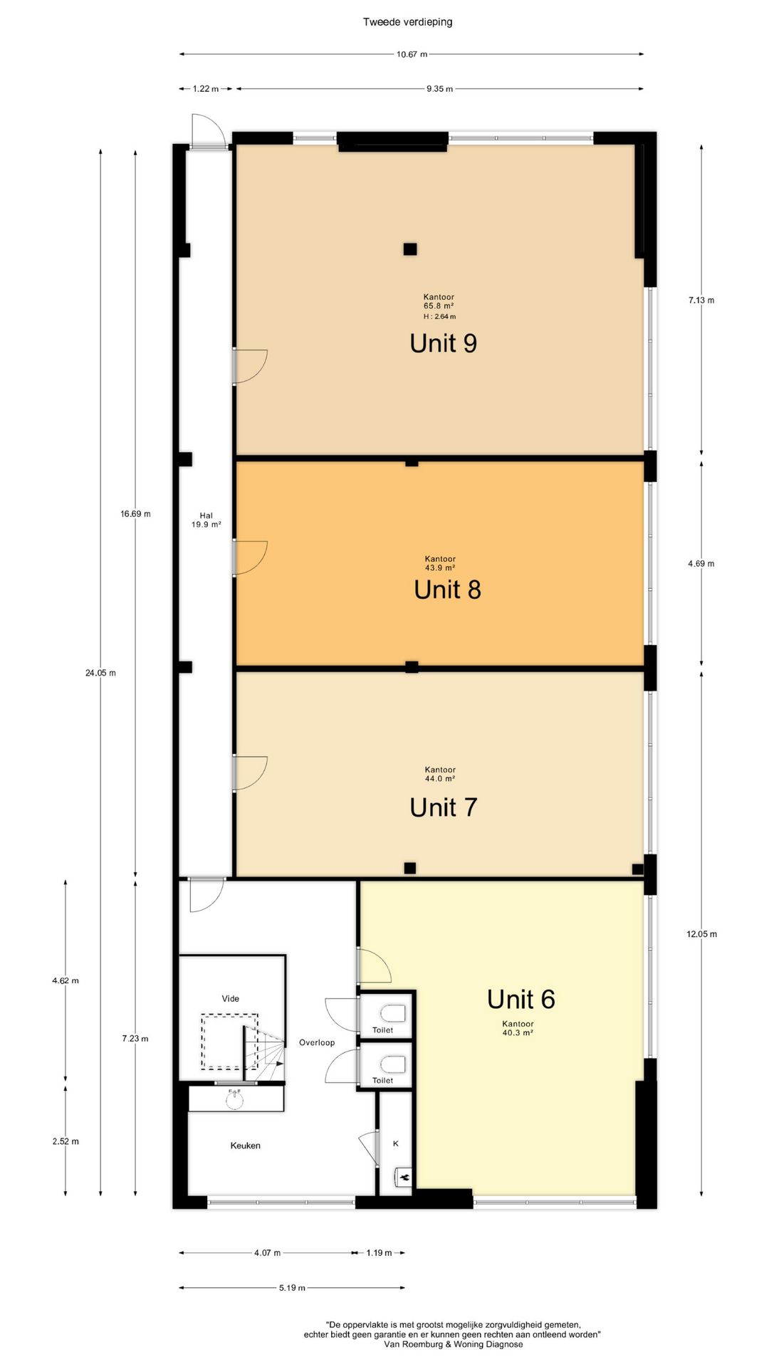 N.b.: "Het gehuurde" betreft de casco kantoorruimte incl. het aandeel in de algemene ruimte.