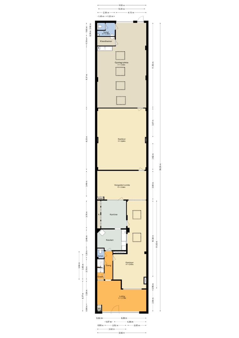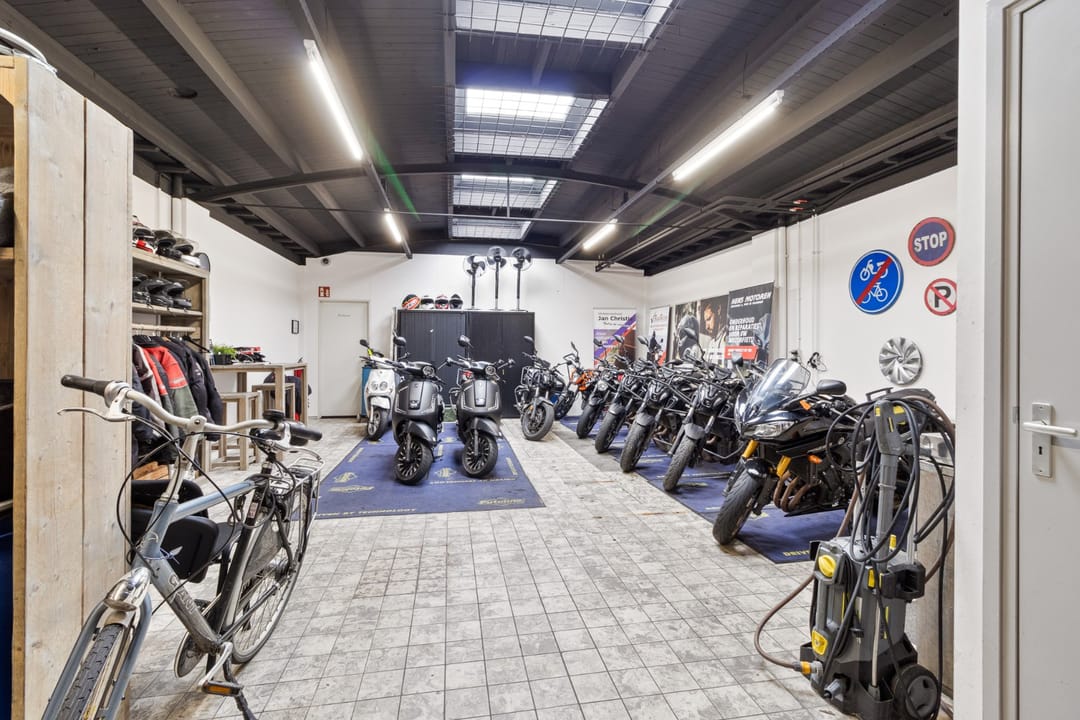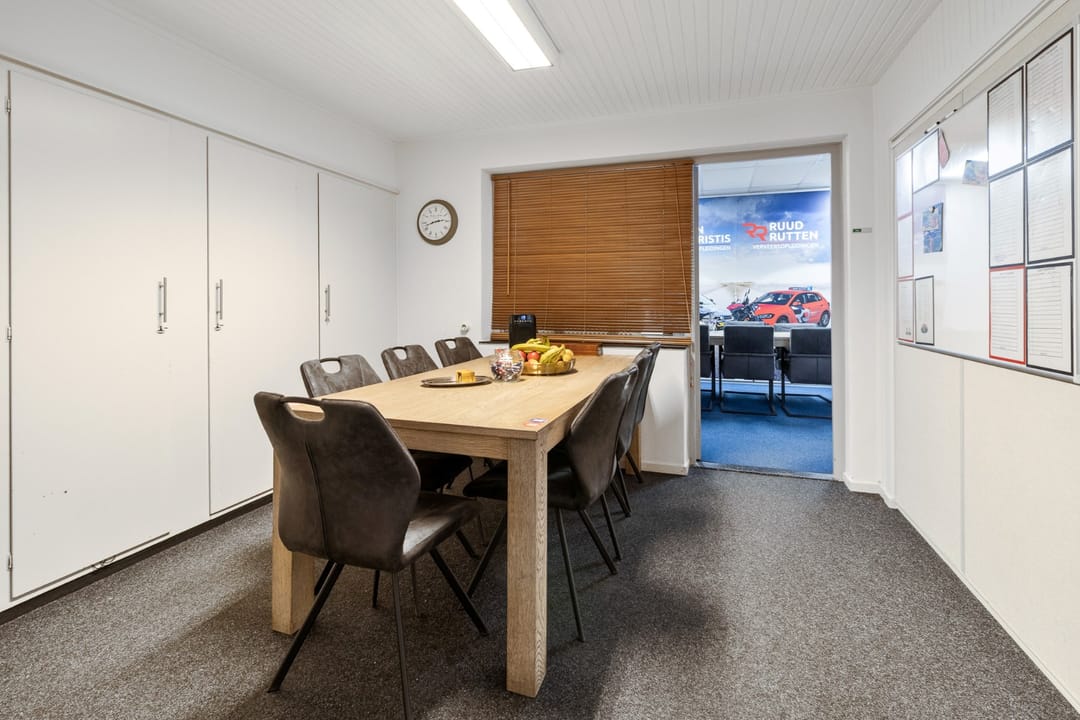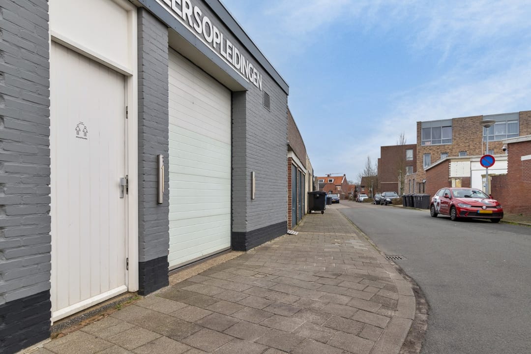 Ontvangstruimte met balie, tussenhal, toiletruimte met hangend closet, ruim kantoor met 2 lichtkoepels, keuken met keukenblok en vaste kasten, kantine (ca. 15m2) met inbouwkasten, spreekkamer (ca. 22m2), royale ruimte (ca. 52m2) welke thans is gebruik is als leslokaal, net afgewerkte en inpandig bereikbare garage (ca 66m2) met kleedruimte, toiletruimte met urinoir en fontein (kleedruimte en toiletruimte met vloerverwarming). De garage heeft verder een tegelvloer, 4 dakramen, elektrische rolpoort, een loopdeur en klein keukenblokje. Via de tussenhal bereikt je de bovenwoning.