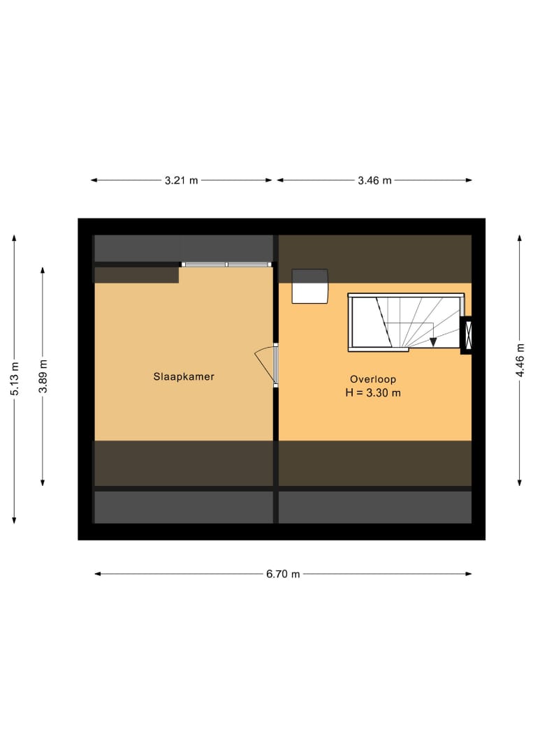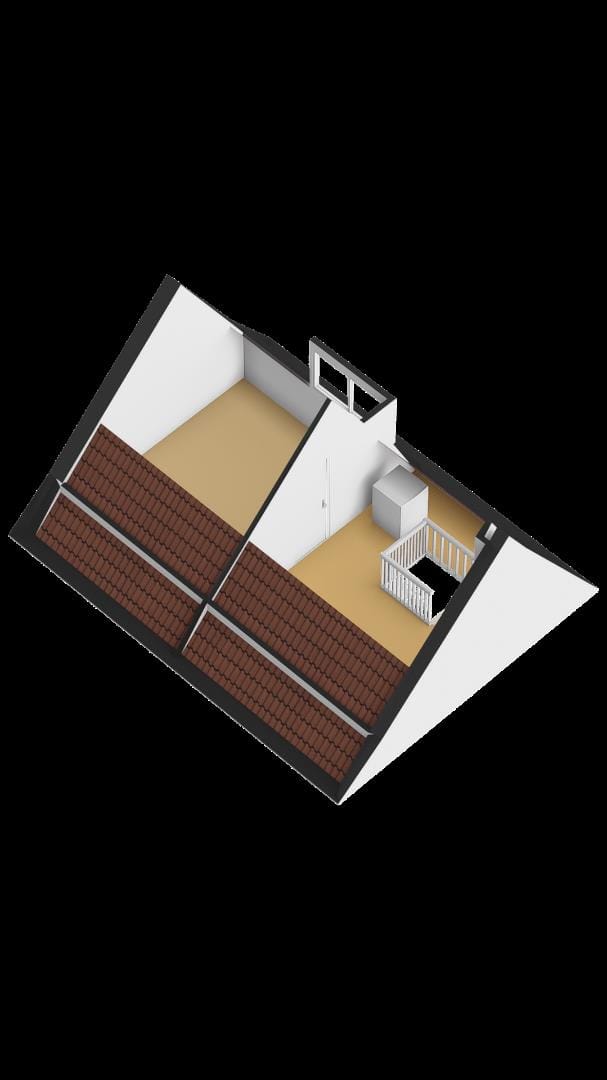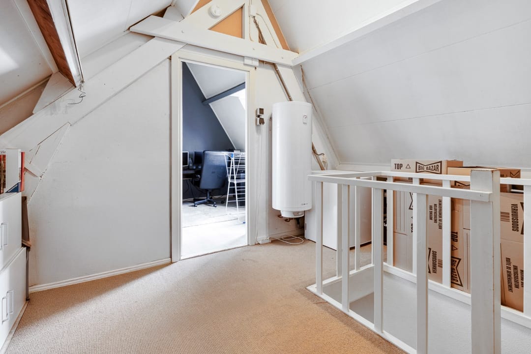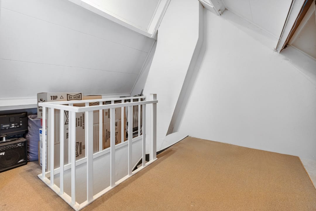 Via een vaste trap naar overloop/bergruimte, tweede slaapkamer (ca. 9m2)