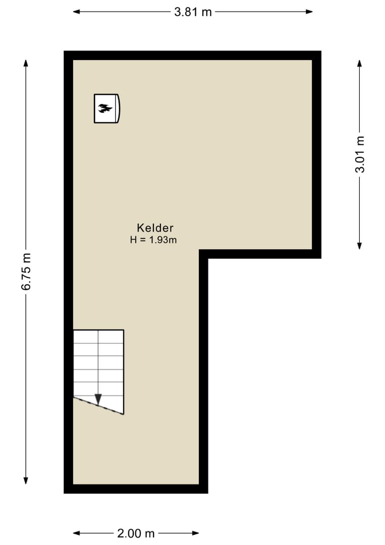 Praktische kelderruimte (ca. 19m2) met c.v. opstelling.