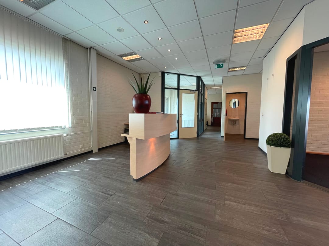 Het object betreft een representatief bedrijfspand dat is ingericht voor commerciële en zakelijke dienstverlening. De huidige indeling bestaat uit een aantal ruime en lichte kantoorruimten, verdeeld over meerdere vertrekken, aangevuld met een klein magazijn/opslagruimte. Deze combinatie maakt het pand uitermate geschikt voor bedrijven die behoefte hebben aan een functionele werkomgeving met ondersteunende opslagmogelijkheden. Het pand beschikt over een eigen parkeerterrein aan de voorzijde, met voldoende parkeergelegenheid voor personeel en bezoekers. Het object wordt traditioneel verwarmd middels een cv-ketel met radiatoren en gekoeld middels airconditioning.
