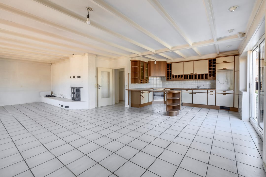 De ruime woonkamer valt direct op door de grote hoeveelheid natuurlijk licht. Dankzij de vloerverwarming en de sfeervolle open haard is het hier het hele jaar door aangenaam vertoeven. Via de schuifdeur in de keuken stap je zo het dakterras op. Met een oppervlakte van circa 68 m² en volop privacy is dit de perfecte plek om te ontspannen of gezellig te genieten met familie en vrienden.