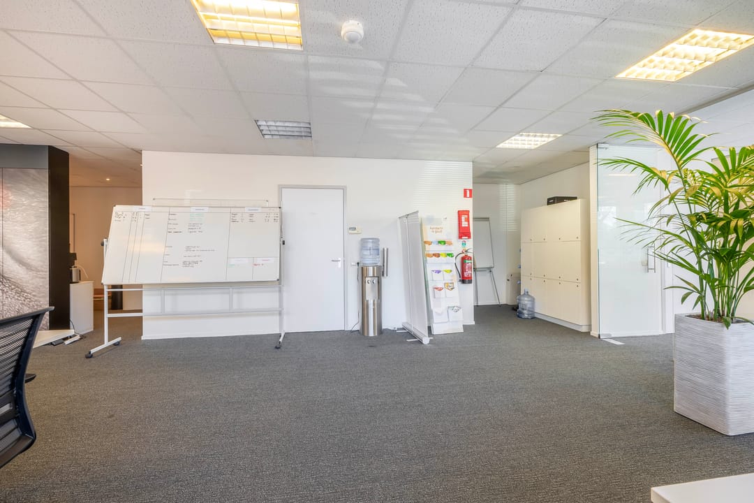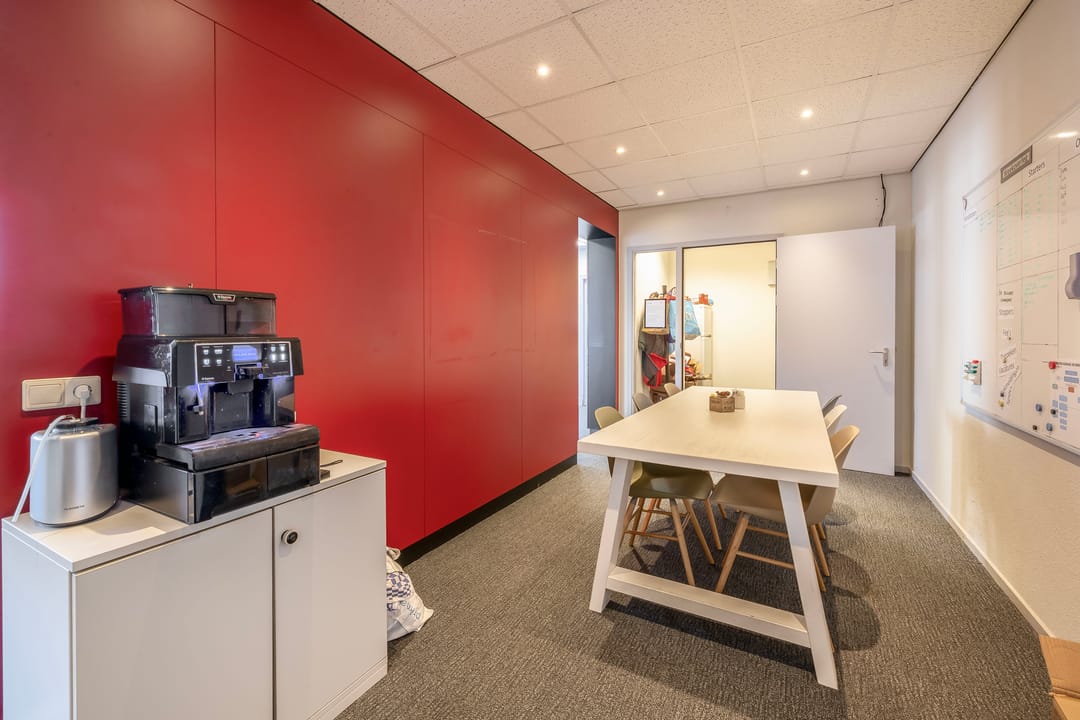 De kantoorruimtes zijn uitgerust met een alarminstallatie, airco-units, verlaagde plafonds met verlichtingsarmaturen. De afgescheiden kantine is uitgerust met een kitchenette.