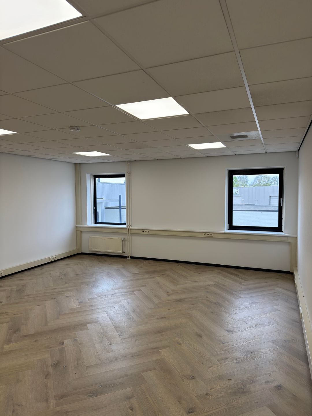 - Mechanische ventilatie, inbouwarmaturen, te openen ramen, kabelgoten, systeemplafond, toilet, pantry, verwarming en kamerindeling