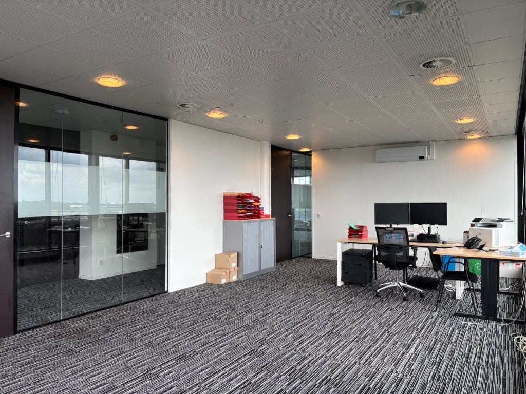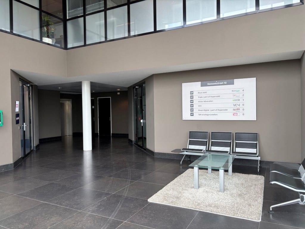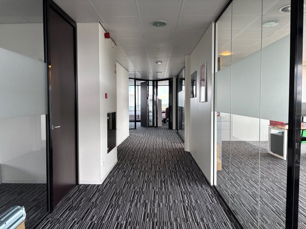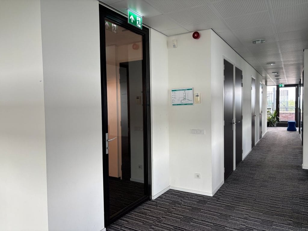 Via de riante entree op de begane grond brengt de lift u naar de bovenste verdieping waar alleen het penthouse gesitueerd is dat wordt gedeeld met een andere huurder. 4 kantoorkamers van verschillende afmetingen met glazen systeemwanden, gemeenschappelijke luxe kantine en hoogwaardige sanitair.