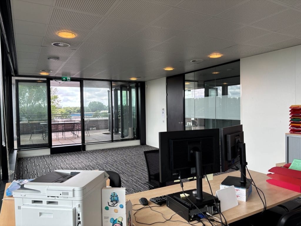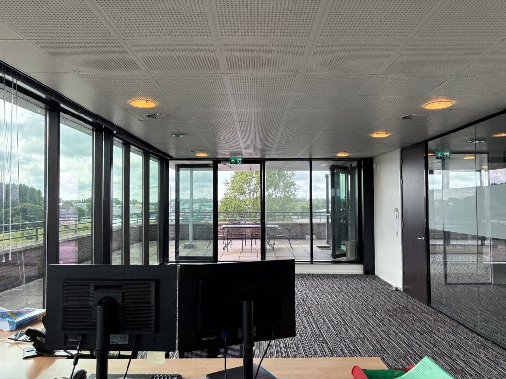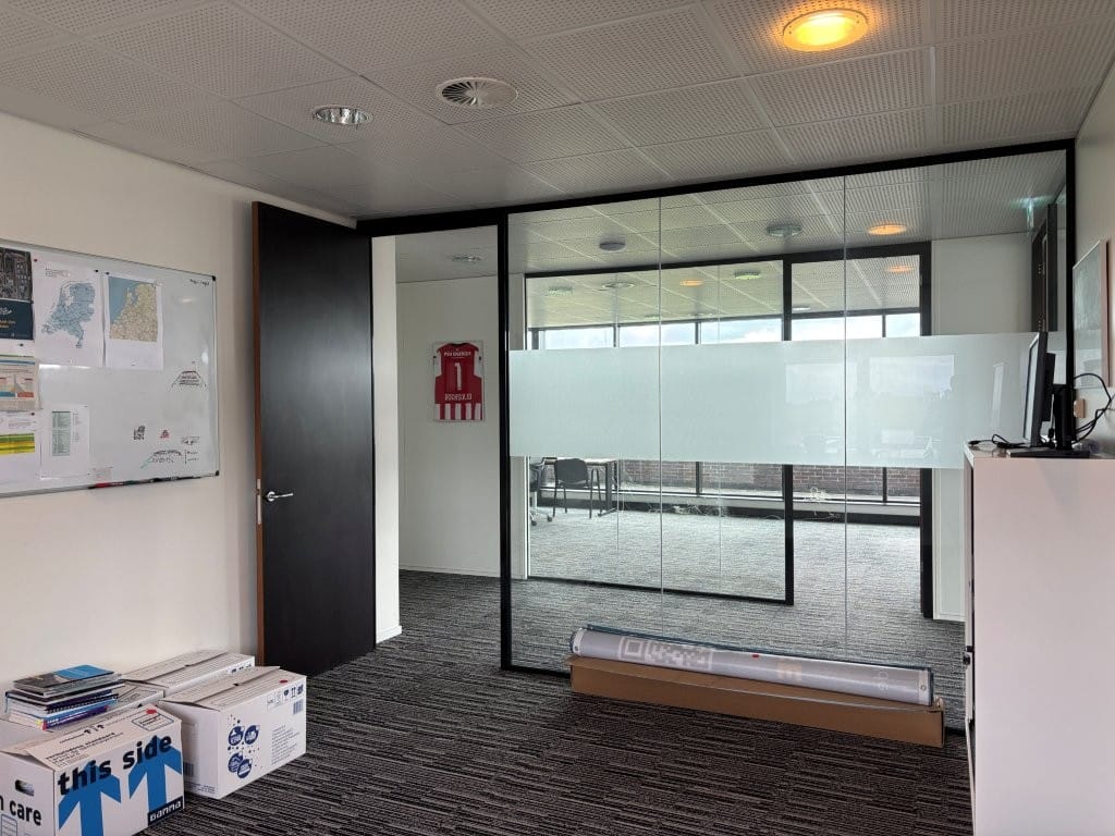 - compleet inbouwpakket met hoogwaardige vloerbedekking, balie, 7 ruime en lichte kantoorkamers, vergaderzaal en kantine met pantry.
