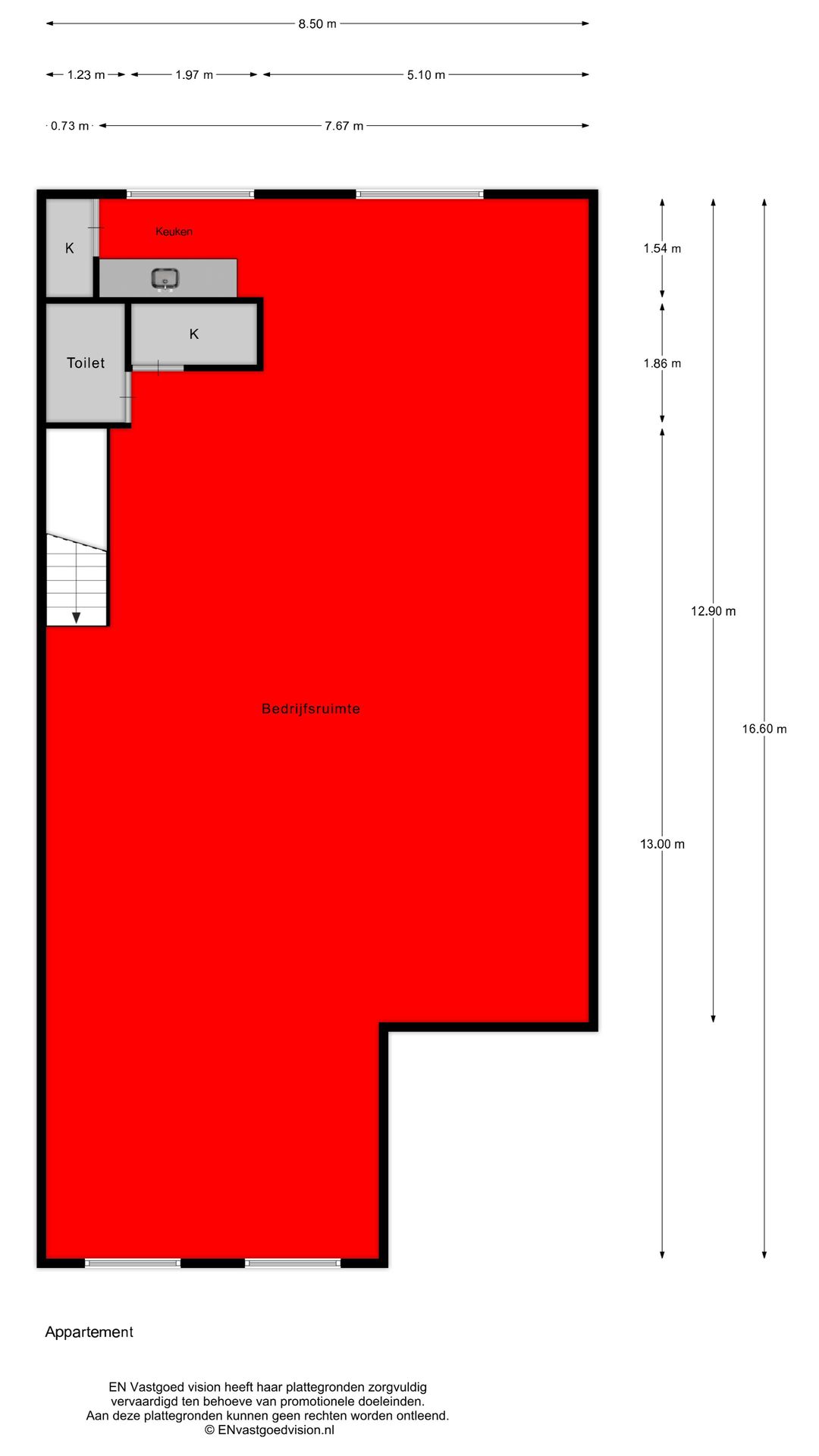 Entree via de gemeenschappelijke hal waar een afgesloten loopdeur is naar de kantoorruimte. Via een trap bereikt u de kantoorruimte op de verdieping, welke is voorzien van een toilet en pantry.